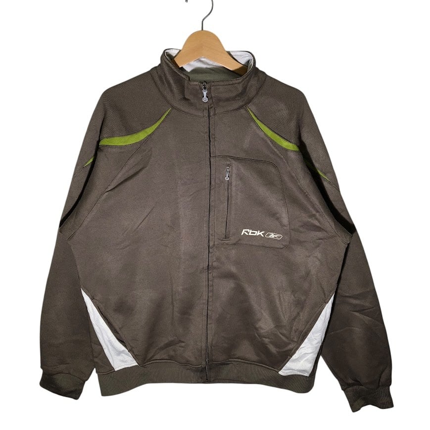 Reebok リーボック 万国旗 トラックジャケット ジャージ トレーナー フルジップ 胸ポケット ワンポイントロゴ ライトアウター バックプリント オーバーサイズ ビッグシルエット ジャージ CHINA製 Lサイズ ブラウン