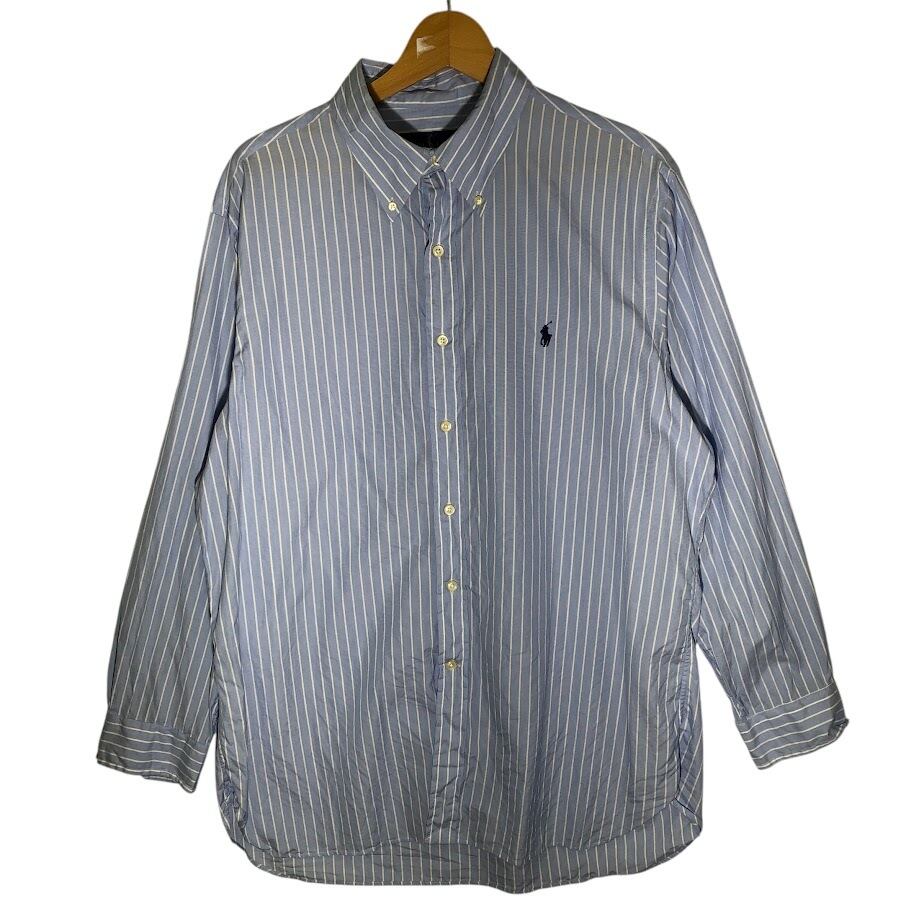 Ralph Lauren/ラルフローレン 長袖シャツ ボタンダウンストライプ柄 ストライプシャツ 長袖 16 1/2サイズ Srilanka製 スカイブルー/ホワイト