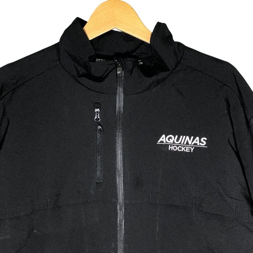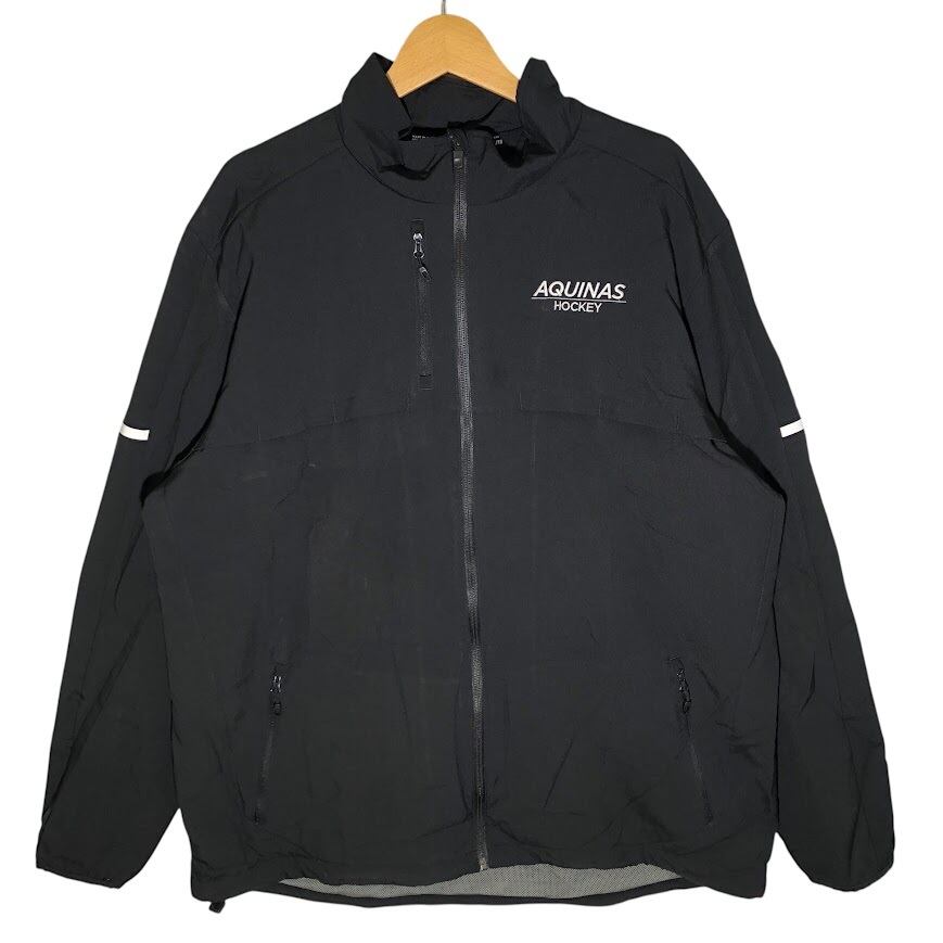 adidas/アディダス ナイロンジャケット オッケーチーム刺繍 AQUINAS HOCKEY メッシュライナー THAILAND製 XLサイズ ブラック