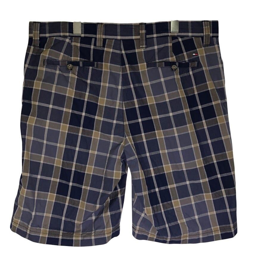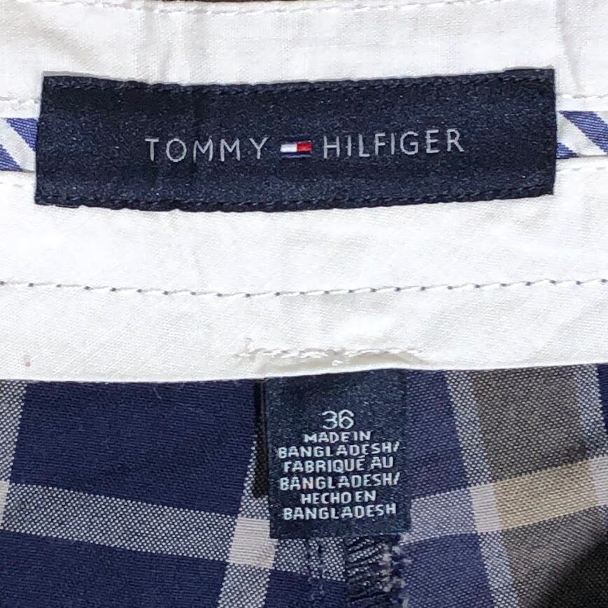 TOMMY HILFIGER トミーヒルフィガー ストレートパンツ ショートパンツ ハーフパンツ チェック柄 ショーツ Bangladesh製 36サイズ ネイビー ブラウン