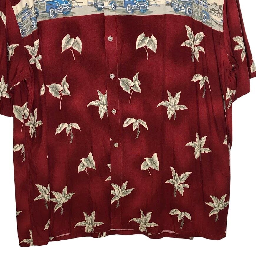 pierre cardin アロハシャツ 総柄 レーヨンシャツ 半袖シャツ ボタンダウン オーバーサイズ ビッグシルエット KOREA製 XXLサイズ 朱色 レッド