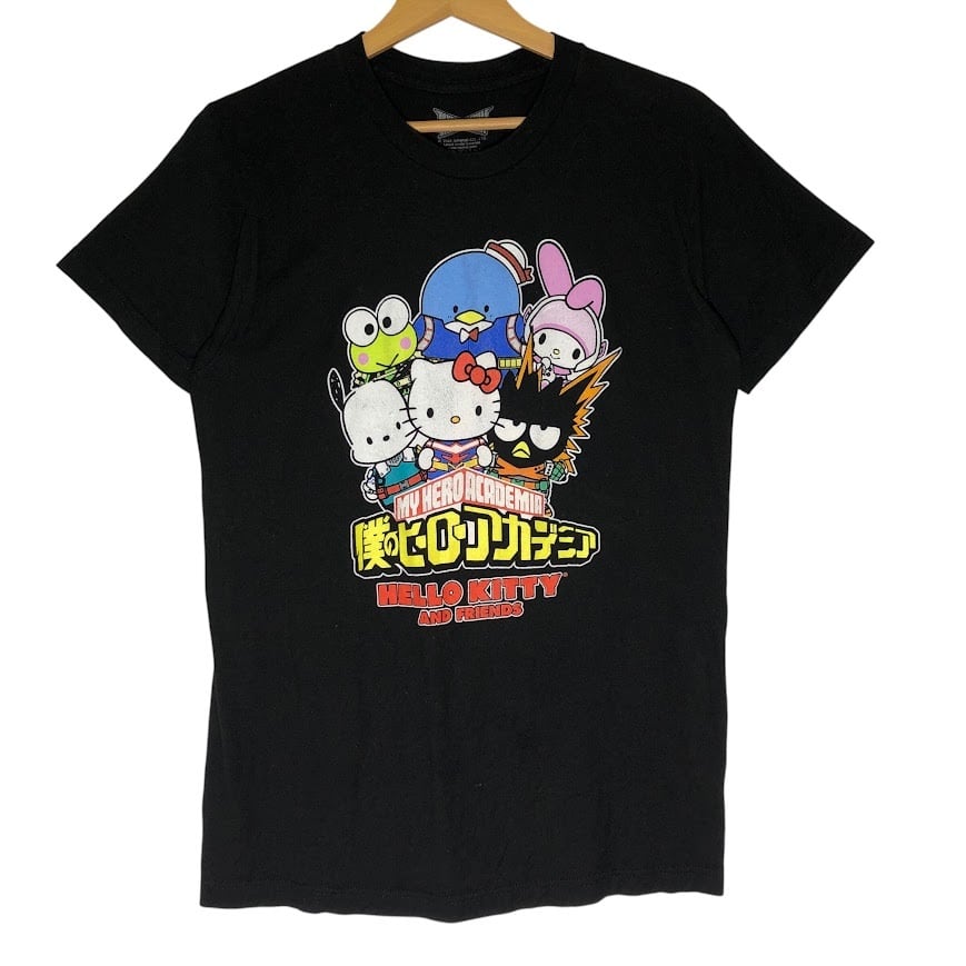 僕のヒーローアカデミア HELLO KITTY ハローキティ コラボTシャツ キャラクタープリント アニメ 半袖 Tシャツ フロントプリント Mexico製 Mサイズ ブラック