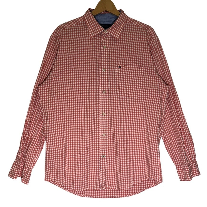 TOMMY HILFIGER CLASSIC FIT トミーヒルフィガー 長袖シャツ ボタンダウン ギンガムチェック ロゴ刺繍 インド製 Lサイズ レッド