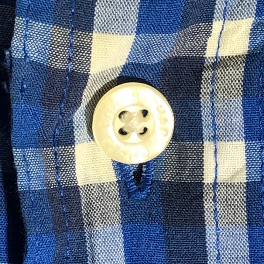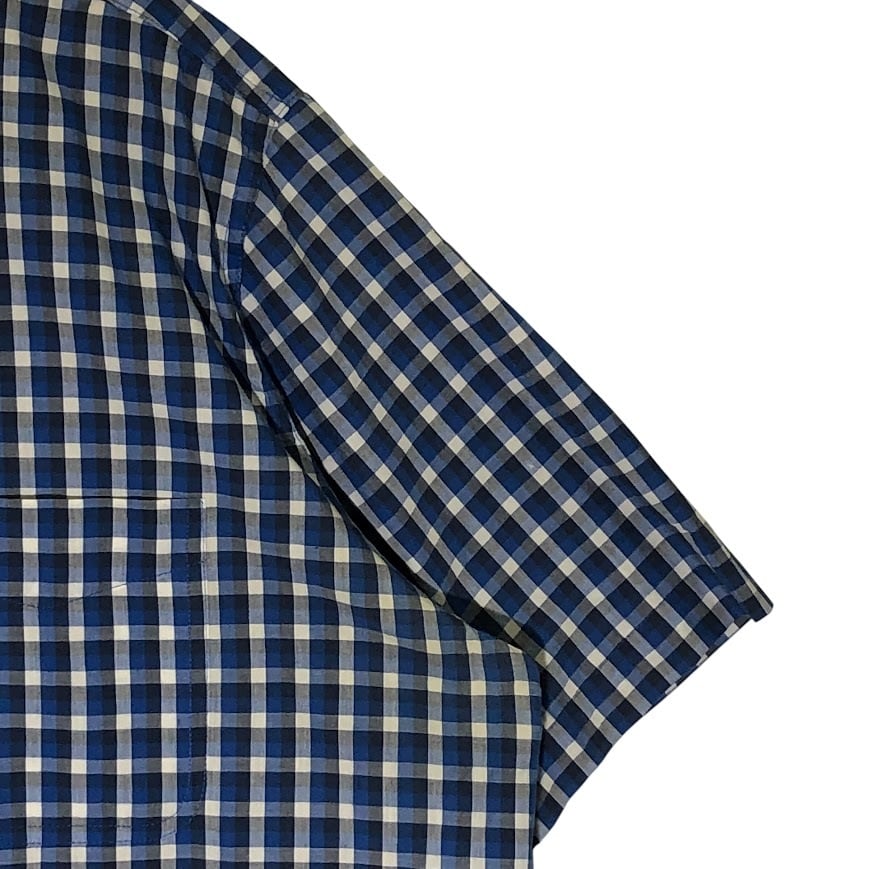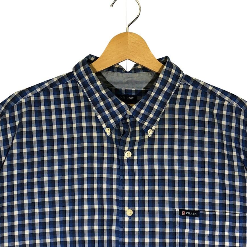 CHAPS チャップス EASY CARE ギンガムチェック 半袖シャツ ボタンダウン ワンポイントロゴ オーバーサイズ Bangladesh製 XXLサイズ ブルー ネイビー ホワイト