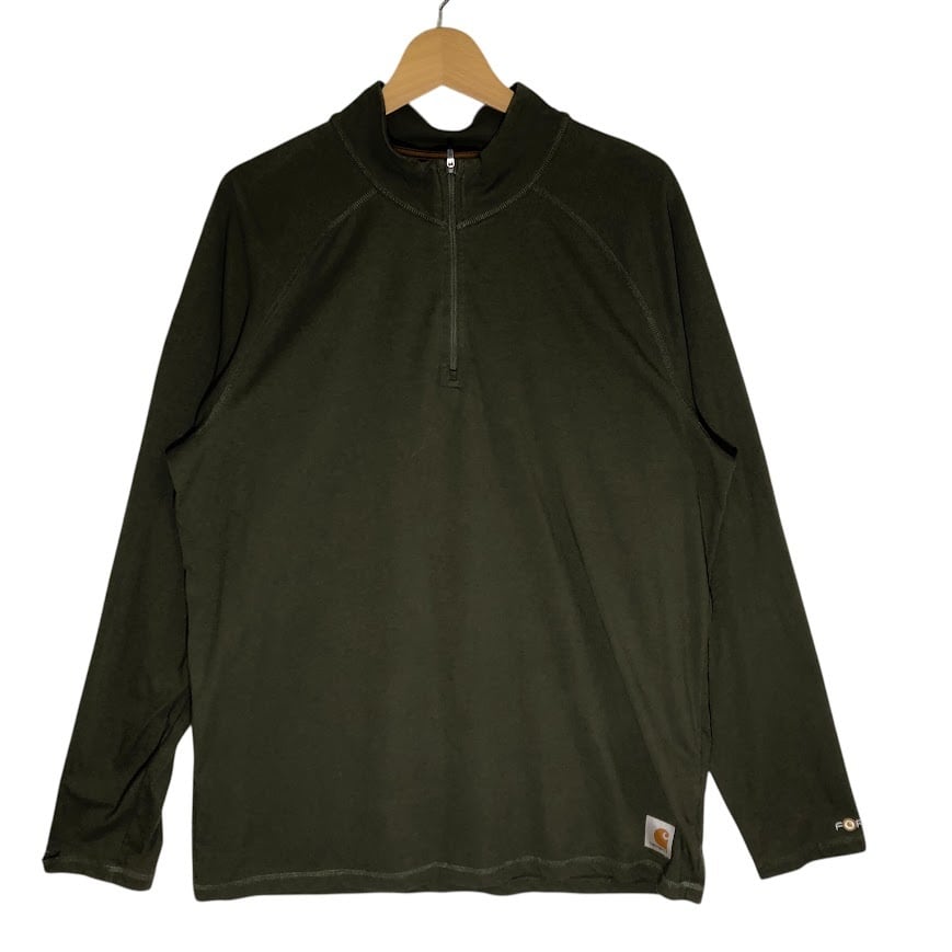 商品名:Carhartt/カーハート RELAXED FIT.FORCE プルオーバー ハーフジップ ロンT カットソー 長袖 Lサイズ Guatemala製 モスグリーン