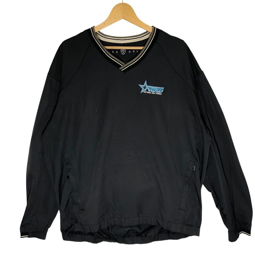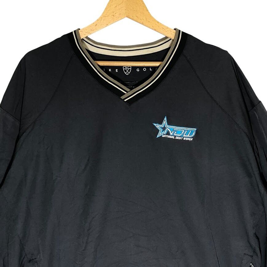 NIKE GOLF/ナイキ ゴルフ ナイロンプルオーバー ナイロンジャケット Vネック ゴルフ 企業ロゴ XLサイズ Vietnam製 ブラック