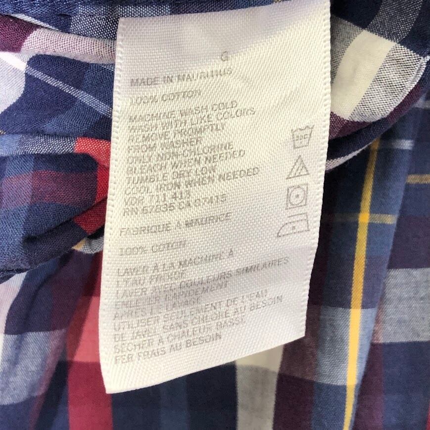 商品名:NAUTICA/ノーティカ CLASSIC FIT 長袖シャツ ボタンダウン チェックシャツ ダブルポケット ワンポイント刺繡 MAURITIUS製 Lサイズ ネイビー/レッド/ホワイト