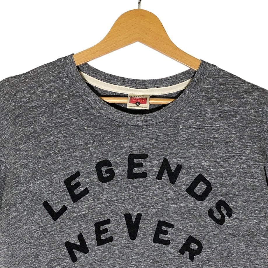 商品名:80-90年代/80-90’s Homgge オマージュ 文字プリント 半袖 Tシャツ フロントプリント オーバーサイズ ビックシルエット クルーネック Lサイズ USA製 グレー