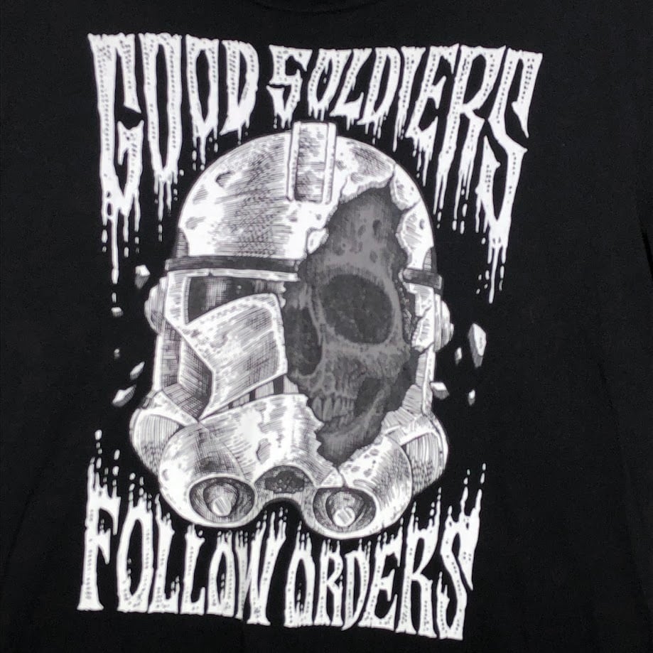 STARWARS スターウォーズ GOOD SOLDIERS FOLLOW OR DERS キャラクタープリント ムービー Tシャツ 映画 半袖 Tシャツ フロントプリント クルーネック ブラック