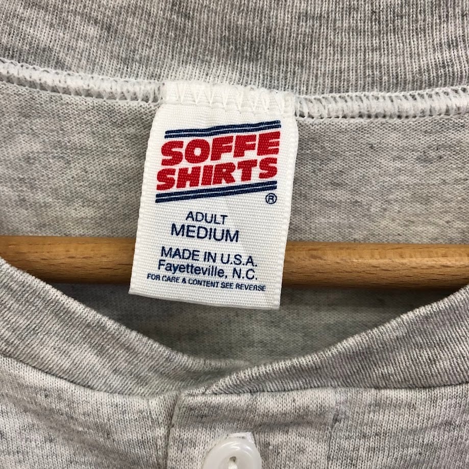 商品名:90年代/90’s SOFFE SHIRTS ソフィーシャツ 米軍 ミリタリー 米軍退役軍人会 ヘンリーネック 半袖Tシャツ フロントプリント USA製 MEDIUMサイズ グレー