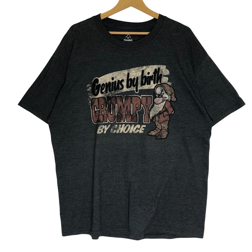 Disneyland ディズニーランド ウォルトディズニーワールド Hanes ヘインズ 白雪姫 おこりんぼ キャラクター グランピー 半袖 Tシャツ フロントプリント クルーネック ELSALVADOR製 XLサイズ グレー
