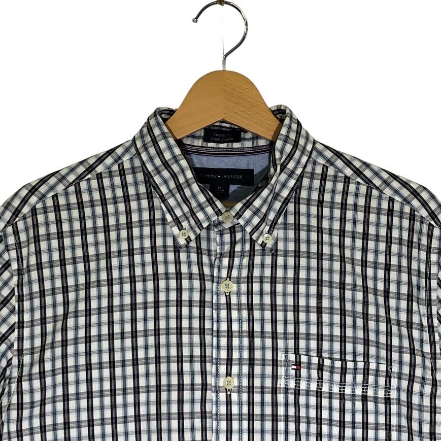 00's vintage 00年代 ヴィンテージ TOMMY HILFIGER トミーヒルフィガー Custom Fit チェック柄 半袖シャツ 胸ポケット ボタンダウン ワンポイント刺繡 China製 Mサイズ ホワイト ブルー ブラック