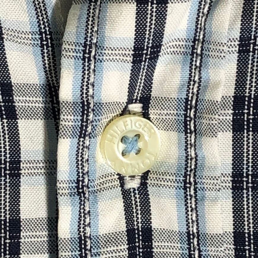 商品名:00's vintage 00年代 ヴィンテージ TOMMY HILFIGER トミーヒルフィガー Custom Fit チェック柄 半袖シャツ 胸ポケット ボタンダウン ワンポイント刺繡 China製 Mサイズ ホワイト ブルー ブラック