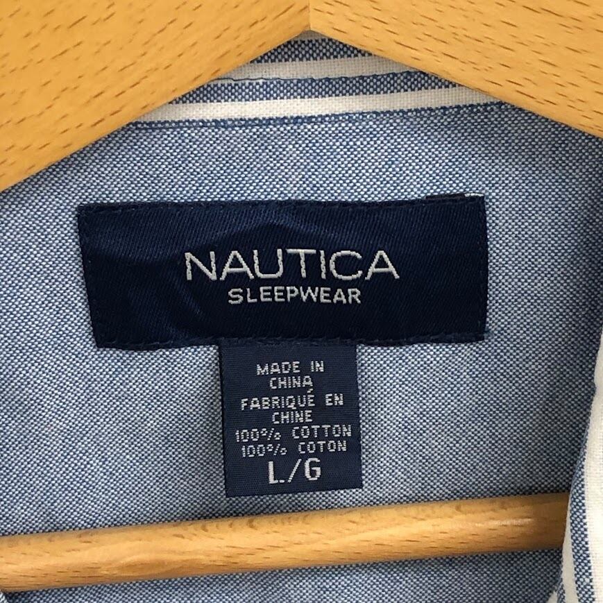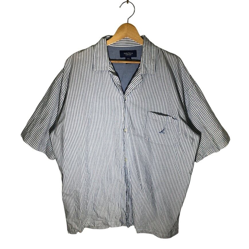 NAUTICA ノーティカ 半袖シャツ ストライプ柄 半袖 シャツ ボタンダウン CHINA製 Lサイズ ブルー ホワイト