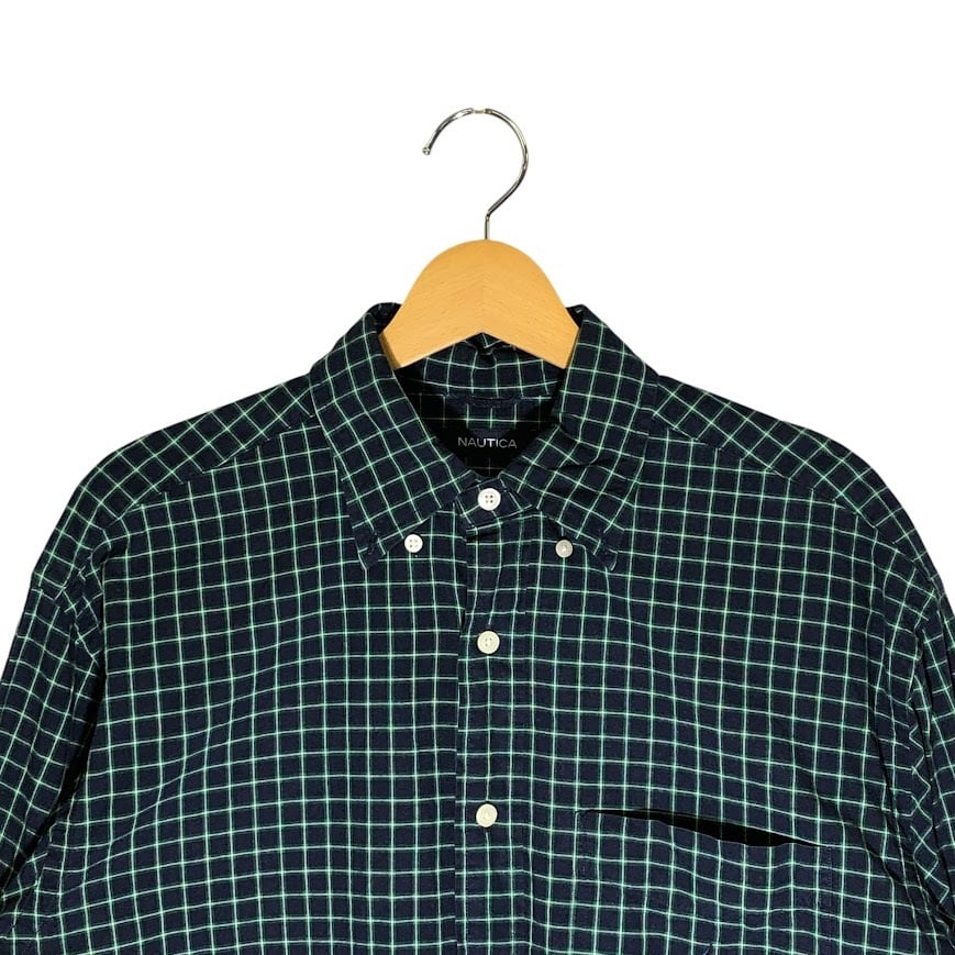 商品名:NAUTICA ノーティカ チェック柄 長袖 シャツ ボタンダウン Philippines製 Lサイズ ネイビー グリーン