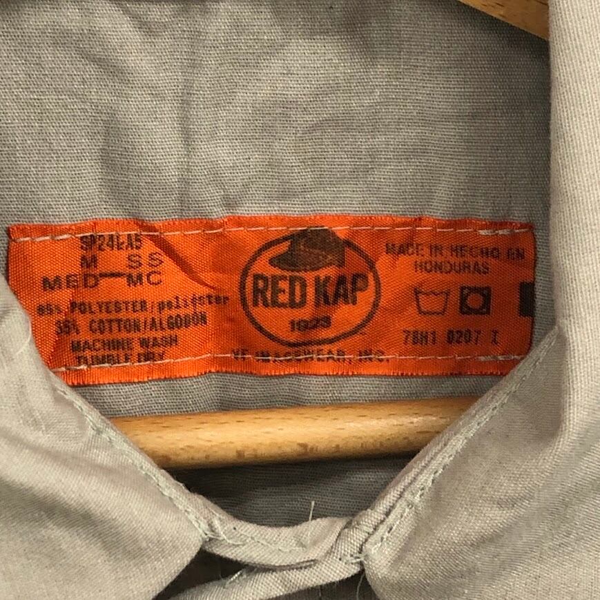 ヴィンテージ RED KAP レッドキャップ ワークシャツ ダブルポケット 無地 半袖 シャツ ボタンダウン Honduras製 Mサイズ ライトグレー