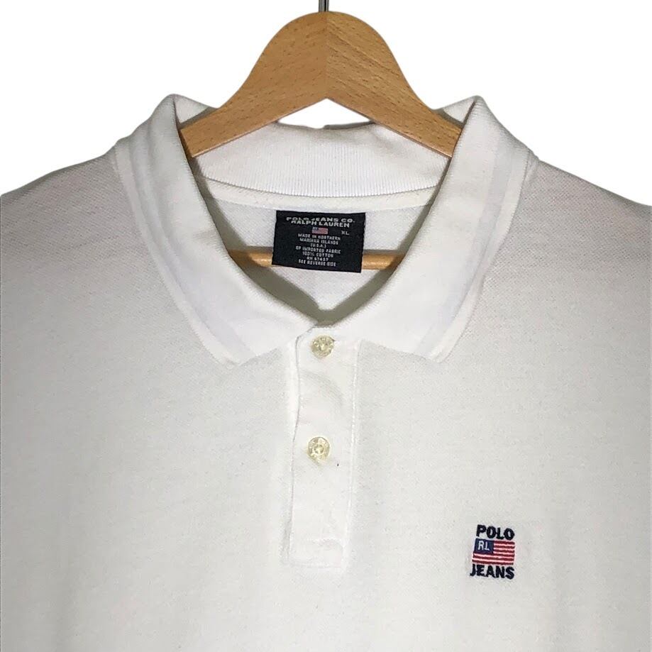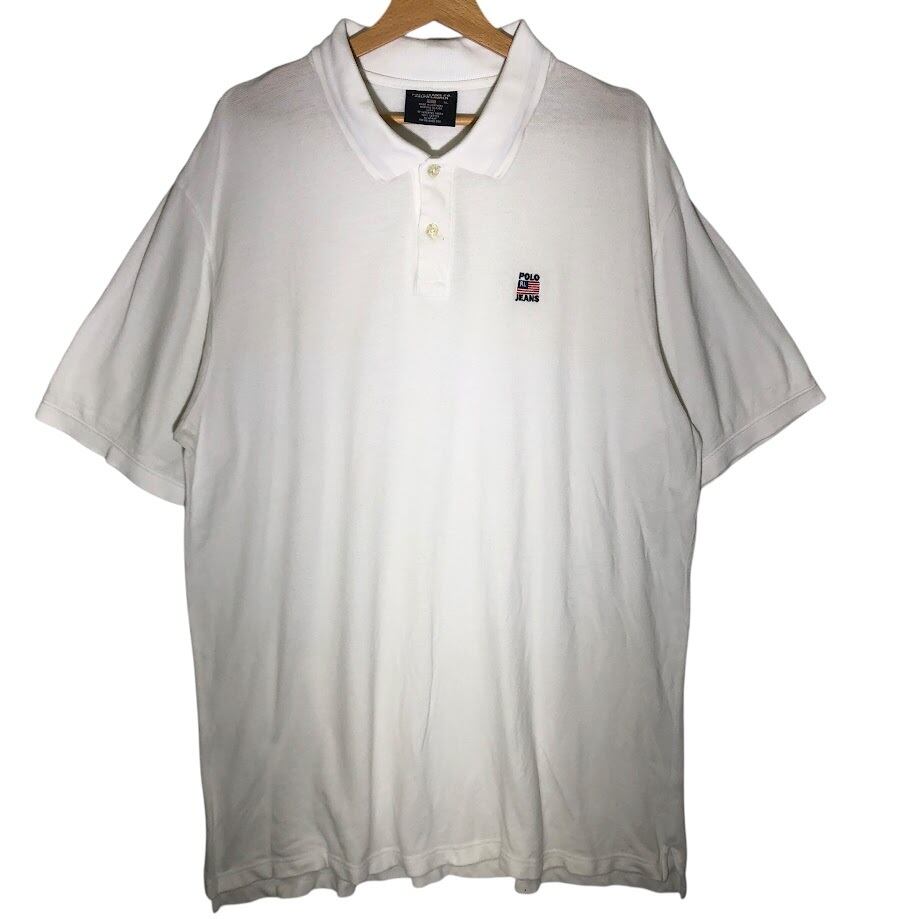 POLO JEANS CO RALPH LAVREN ポロシャツ 星条旗 ロゴ刺繡 半袖 ワンポイントロゴ刺繡 NORTHERN MARIANA IS LANDS (USA) 製 XLサイズ ホワイト