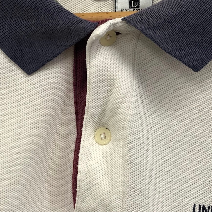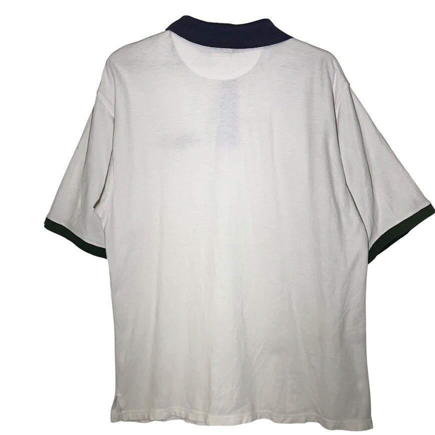 商品名:90年代/90’s ヴィンテージ GEAR カレッジポロシャツ 半袖 ロゴ刺繡 マサチューセッツ Lサイズ USA製 ホワイト
