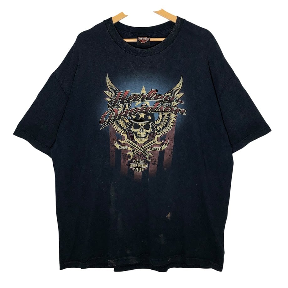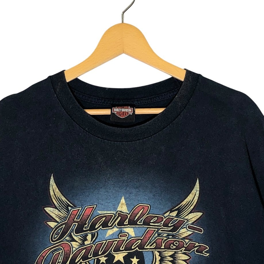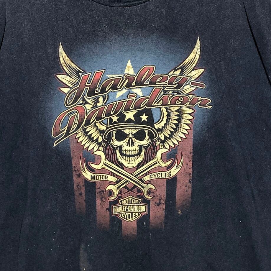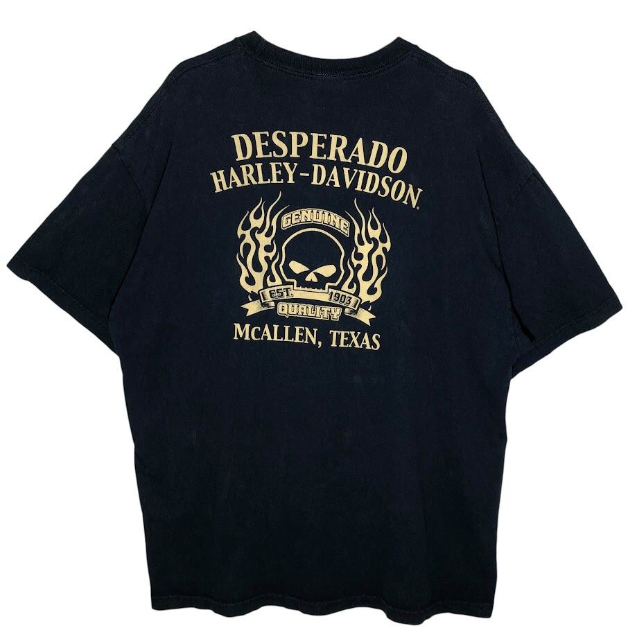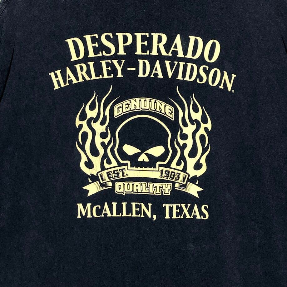 HARLEY-DAVIDSON ハーレーダビッドソン スカル ファイヤー テキサス 両面プリント ネイビー