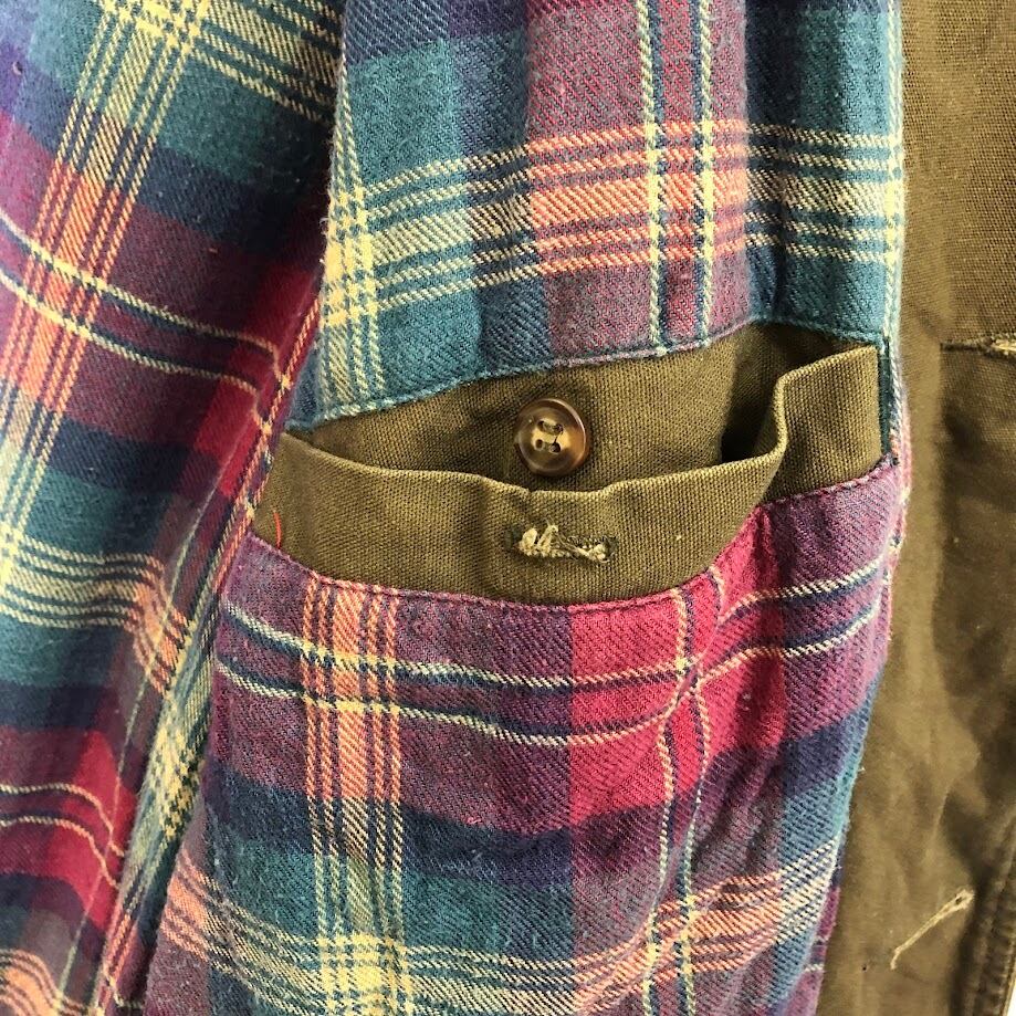 00年代/00's AMERICAN EAGLE アメリカンイーグル フィールドコート ハンティングジャケット タータンチェックライナー オールドジャケット Indonesia製 Mサイズ カーキ/レッド