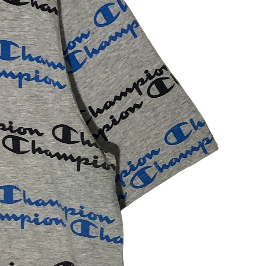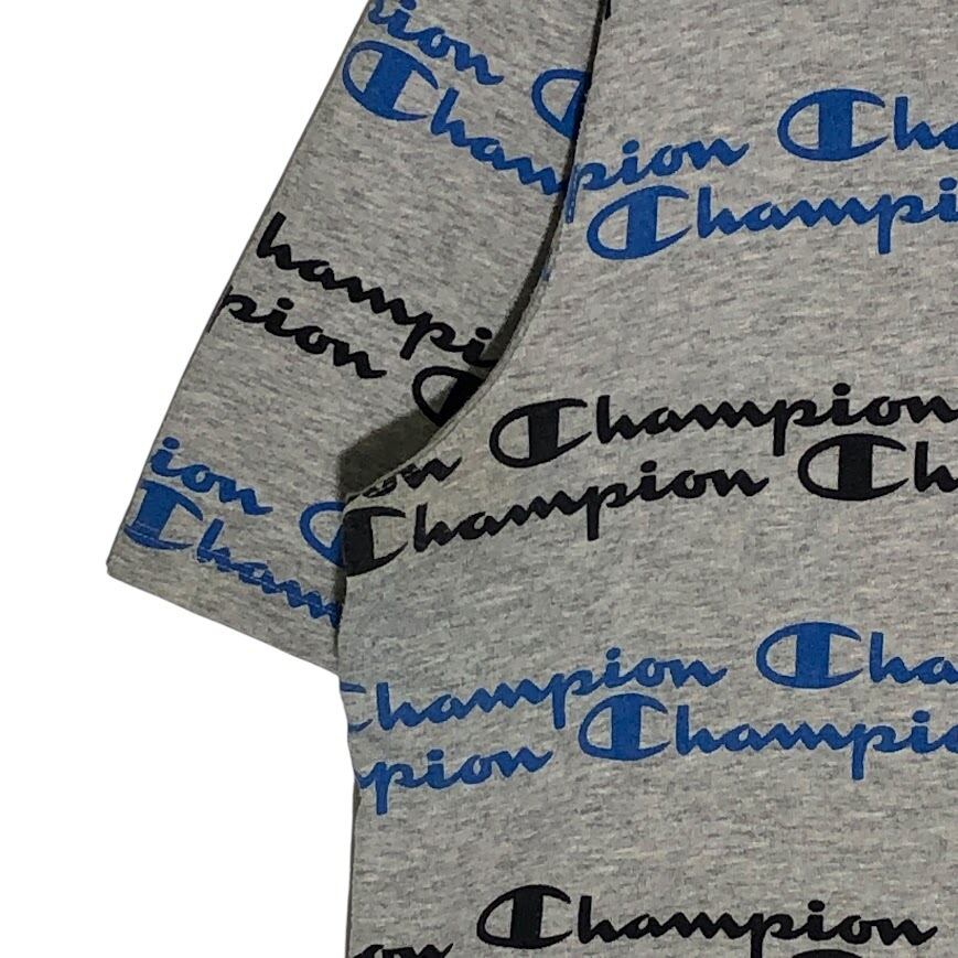 Champion/チャンピオン ロゴグラフィックデザイン 総柄 半袖Tシャツ フロントバックプリント オーバーサイズ ビッグシルエット INDNESIA製 XLサイズ グレー