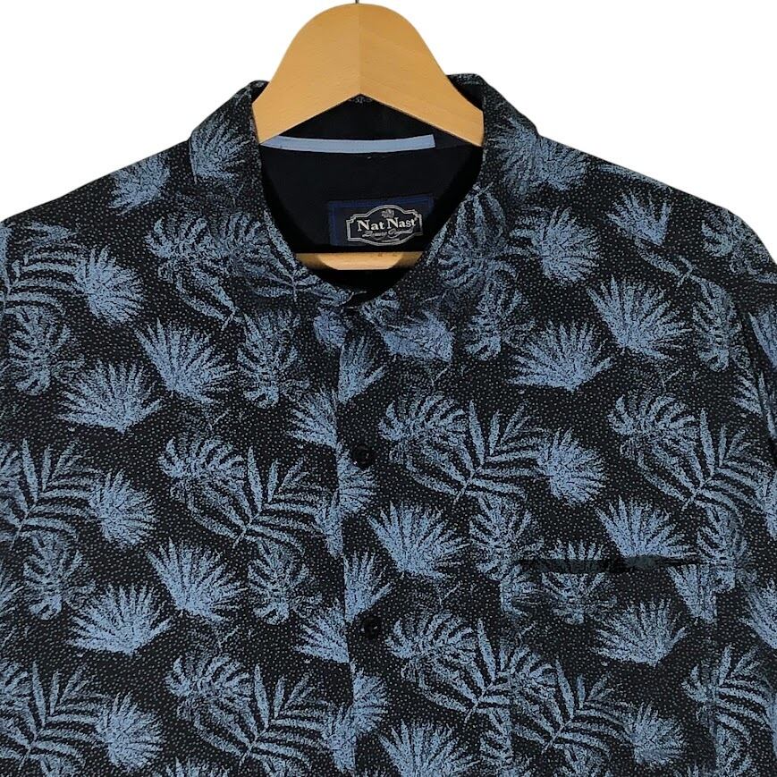 NatNast シルクシャツ 総柄 アロハシャツ 半袖シャツ オーバーサイズ ビッグシルエット CHINA製 XLサイズ ブラック/ブルー