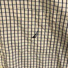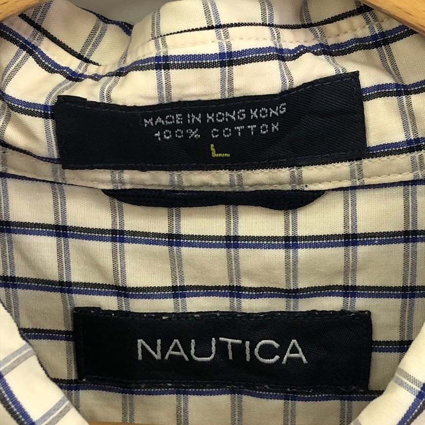 NAUTICA/ノーティカ 半袖シャツ BDシャツ ワンポイントロゴ刺繡 チェック柄 チェックシャツ Lサイズ HongKong製 オフホワイト/ブルー