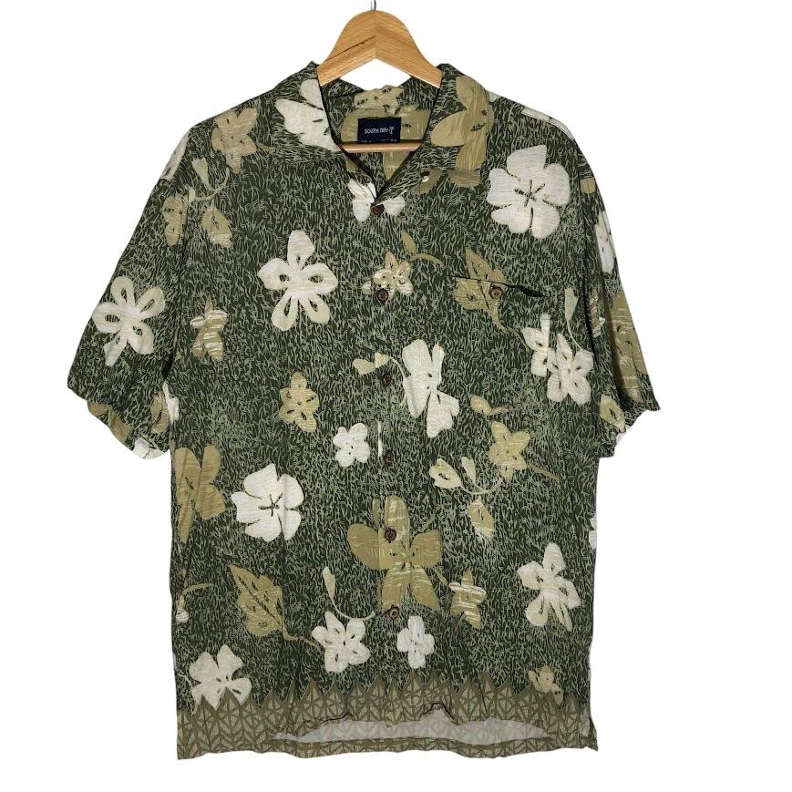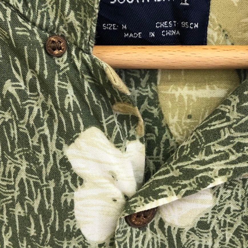 SOUTH BAY アロハシャツ 半袖シャツ ボタンダウン 総柄 CHINA製 Mサイズ グリーン