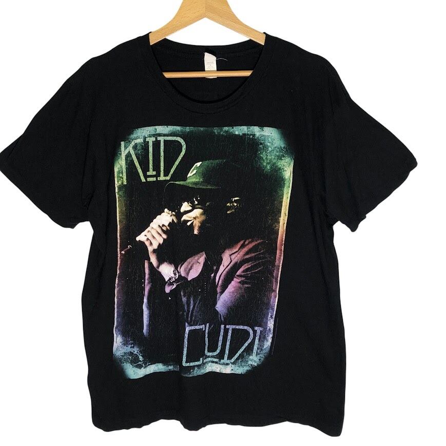 00年代/00’s ヴィンテージ KID CUDI/キッド・カディ ラッパー ヒップホップ バンT アーティスト 両面プリント ツアーT 半袖Tシャツ クルーネック CHINA製 Lサイズ ブラック
