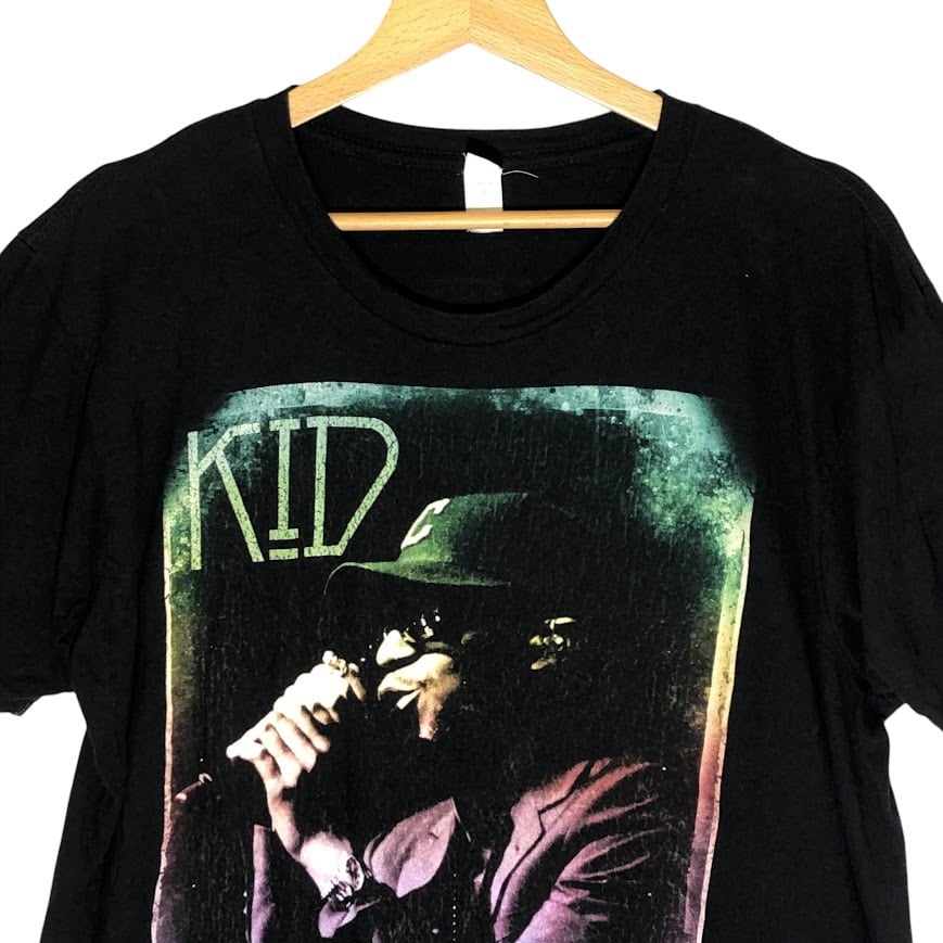 商品名:00年代/00’s ヴィンテージ KID CUDI/キッド・カディ ラッパー ヒップホップ バンT アーティスト 両面プリント ツアーT 半袖Tシャツ クルーネック CHINA製 Lサイズ ブラック