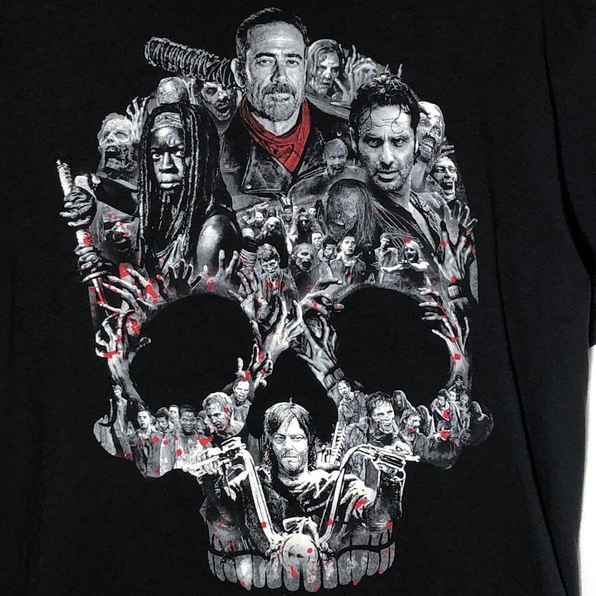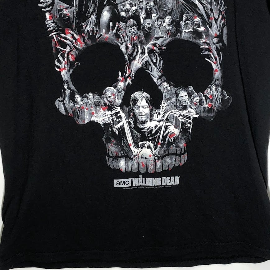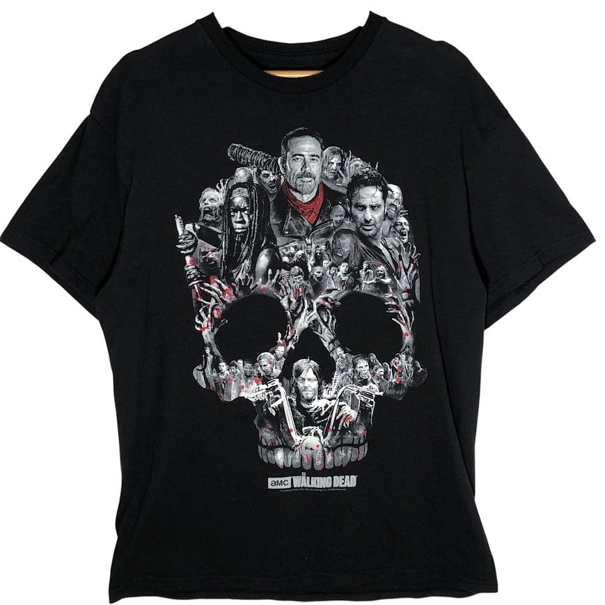 THE WALKING DEAD ウォーキングデッド 映画 ドラマ ムービーTシャツ ドクロ スカル 半袖 Tシャツ フロントプリント オーバーサイズ クルーネック ブラック