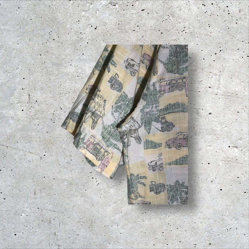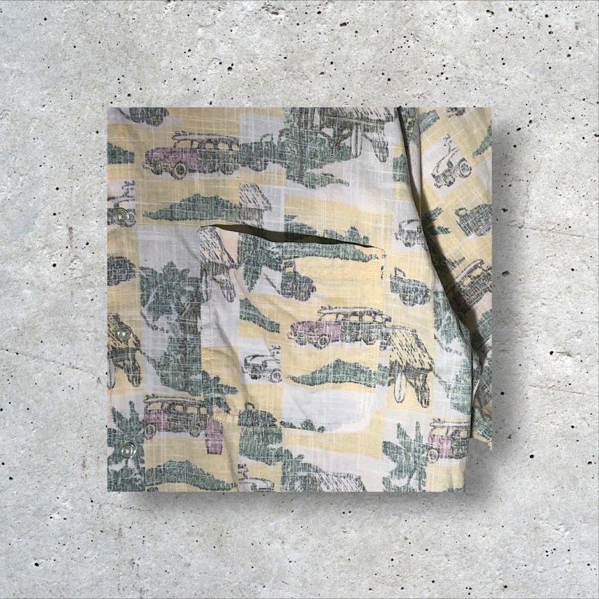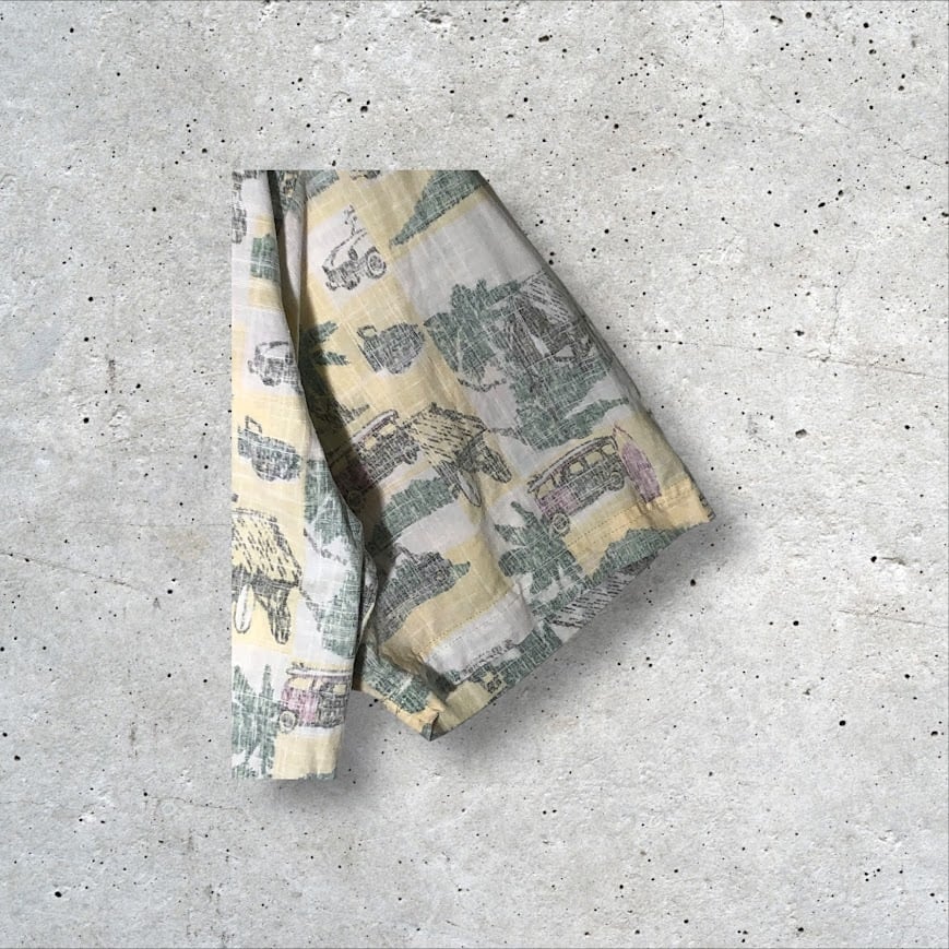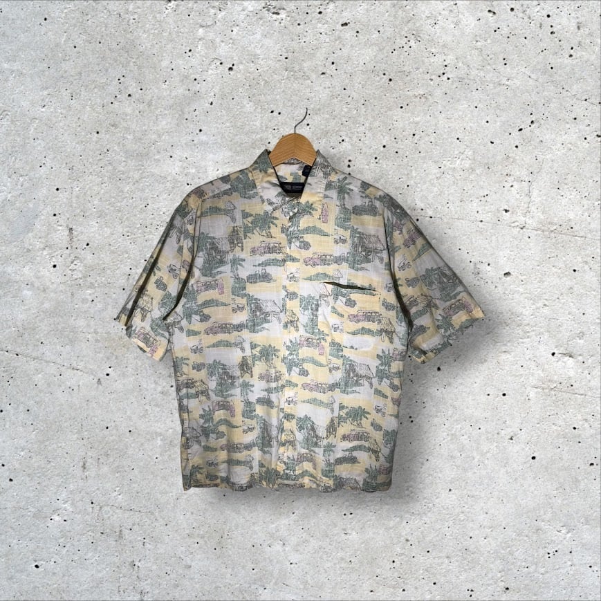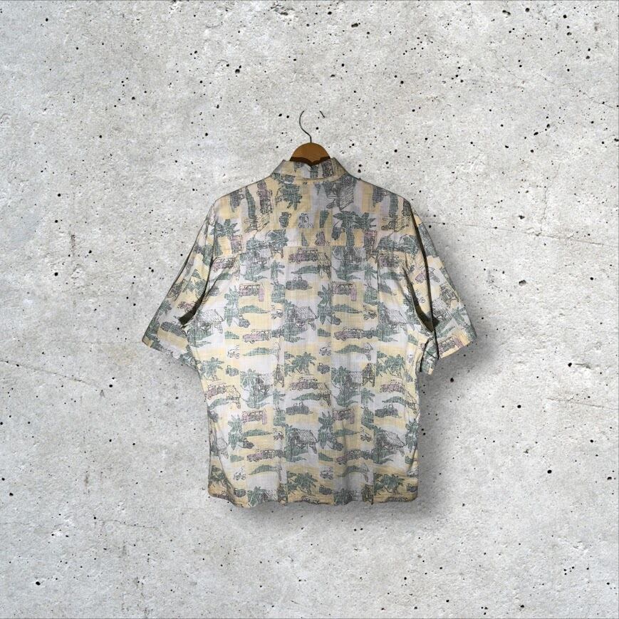 商品名:00's vintage 00年代 ヴィンテージ FADED GLORY フェイデッドグローリー 総柄 カジュアルシャツ Bangladesh製 Mサイズ ライトイエロー ホワイト グリーン