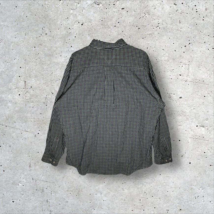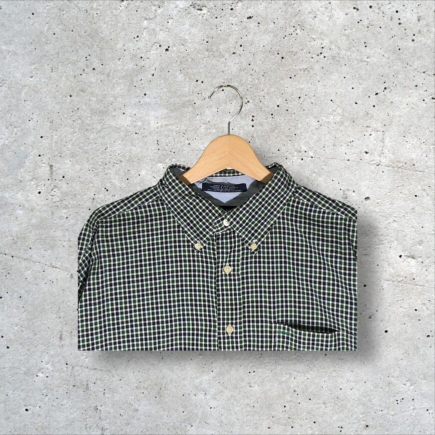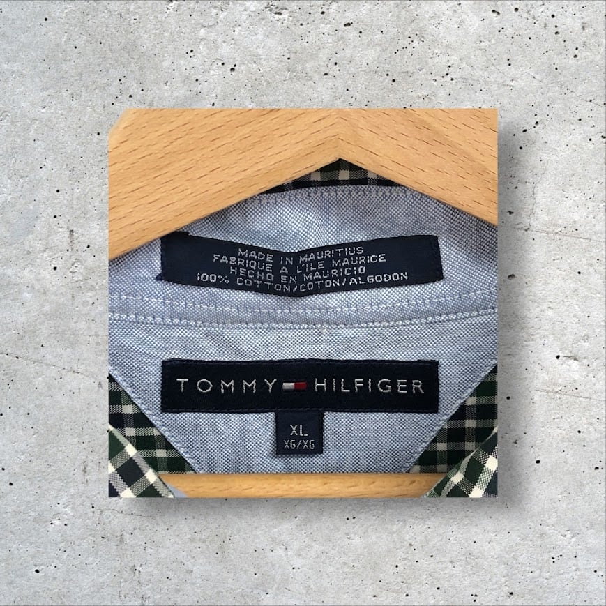 商品名:00's vintage 00年代 ヴィンテージ TOMMY HILFIGER トミーヒルフィガー 長袖シャツ ギンガムチェックシャツ ボタンダウン ワンポイント刺繍 オーバーサイズ ビッグサイズ MAURITIUS製 XLサイズ グリーン ネイビー
