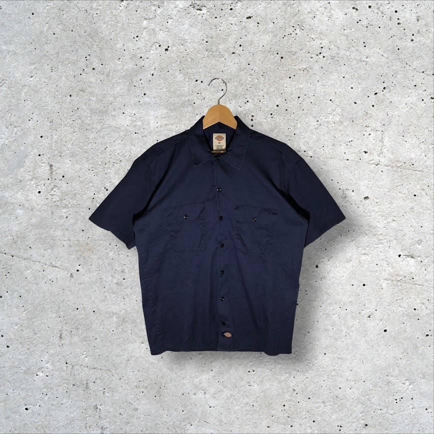 Dickies ディッキーズ ワークシャツ ダブルポケット アメカジ 半袖 シャツ ボタンダウン ホンジュラス製 Mサイズ ネイビー
