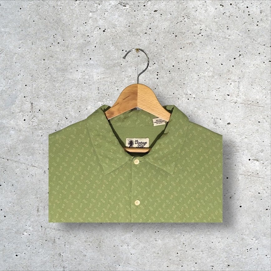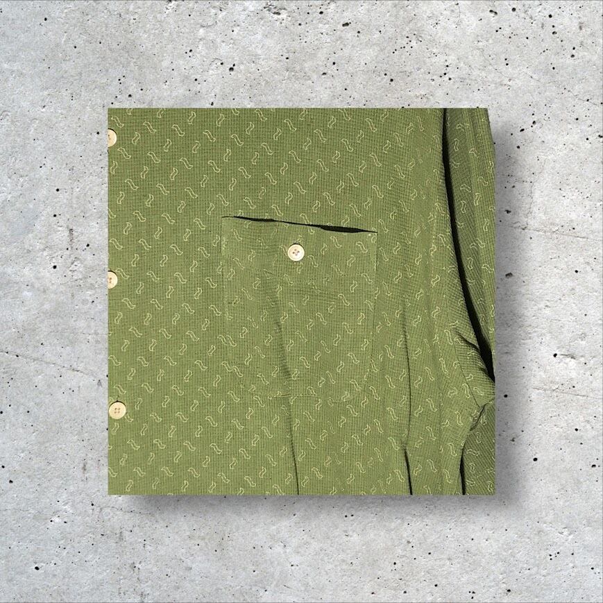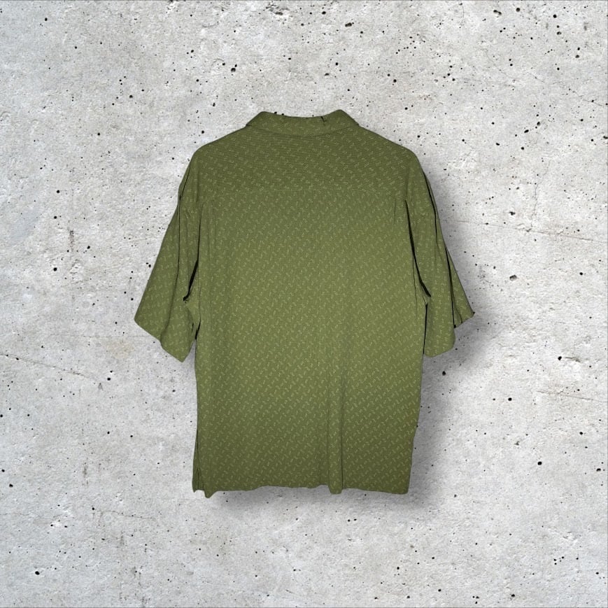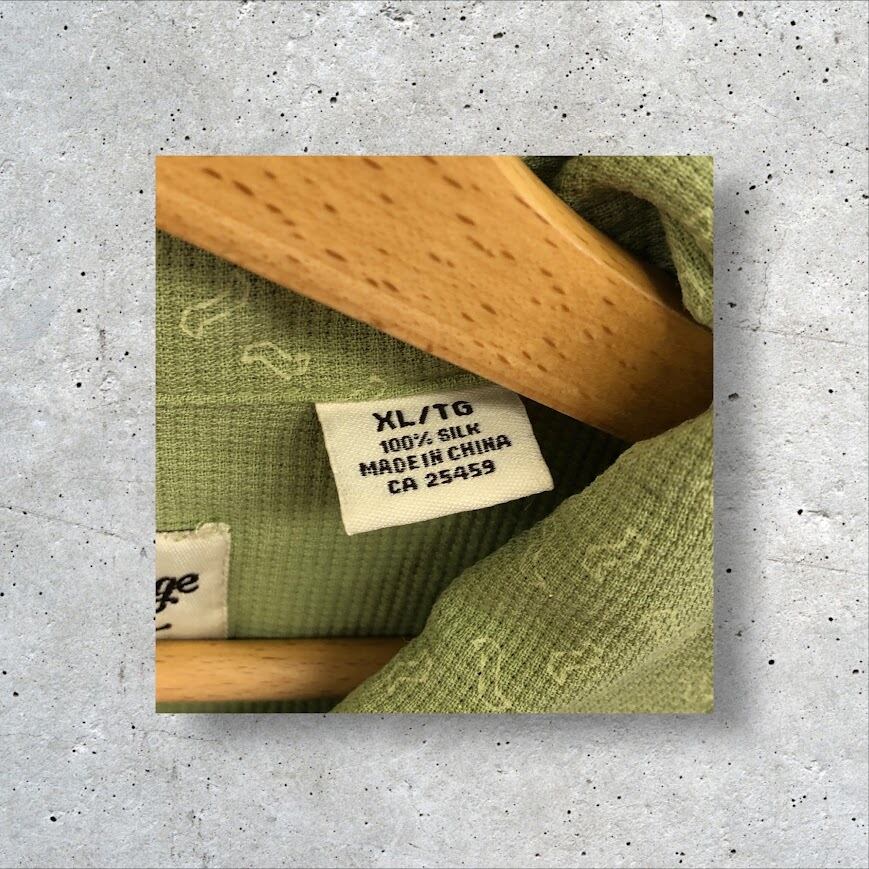 Vintage Silk ヴィンテージシルク シルクシャツ 総柄 半袖 シャツ オーバーサイズ ビッグシルエット CHINA製 XL/TGサイズ グリーン