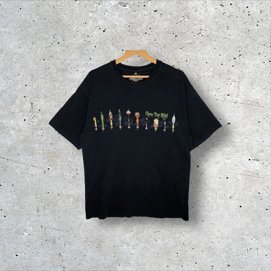 NEWPORT BLUE Tシャツ 半袖 OPEN TAP NIGHT 酒 プリント バー アルコール Pakistan製 XLサイズ ブラック