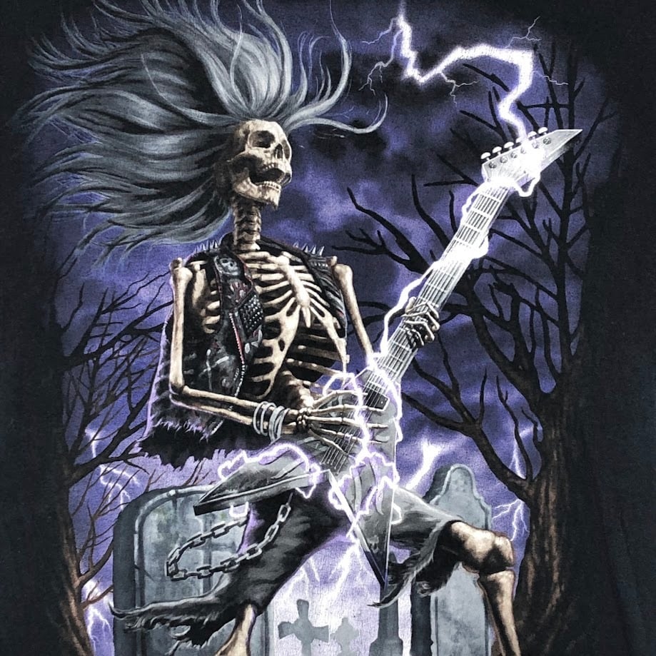ヴィンテージ vintage プリントTシャツ 半袖 死神 スケルトン ガイコツ ギター ビッグシルエット Lサイズ ブラック