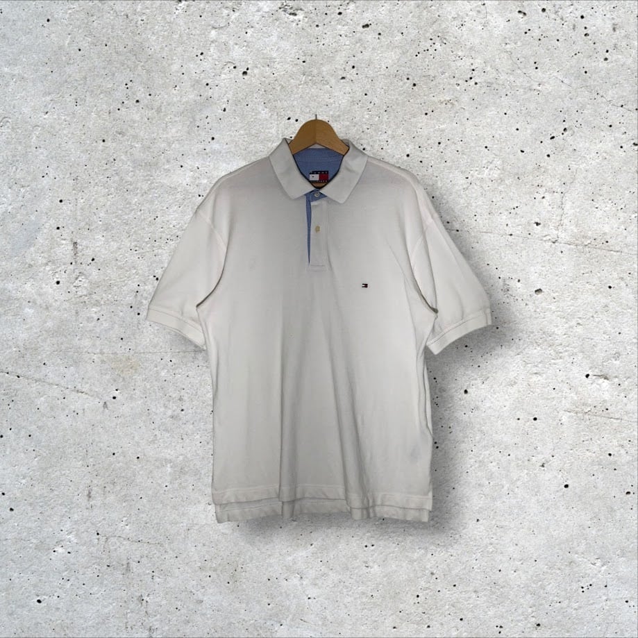 商品名:90's vintage 90年代 ヴィンテージ TOMMY HILFIGER トミーヒルフィガー フラッグタグ ポロシャツ 半袖 ワンポイント刺繡 Mexico製 L/Gサイズ ホワイト