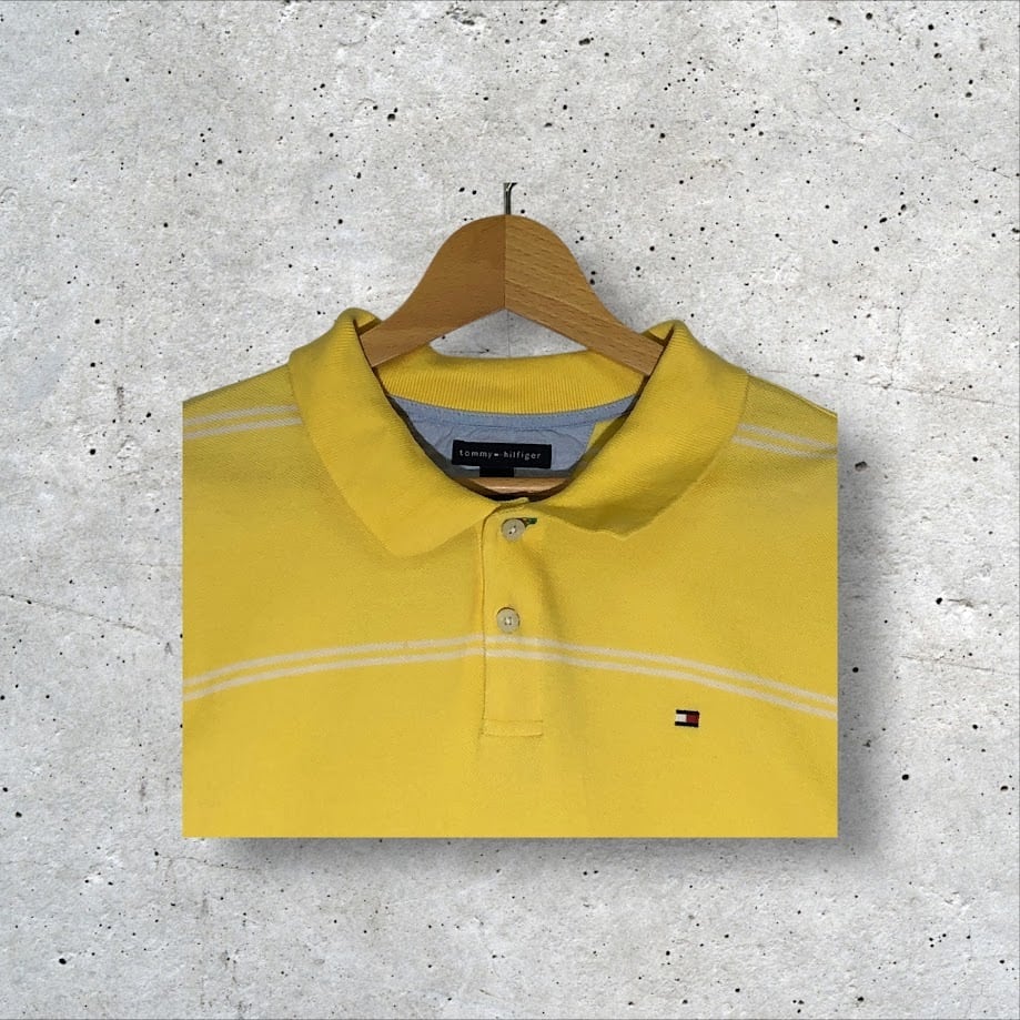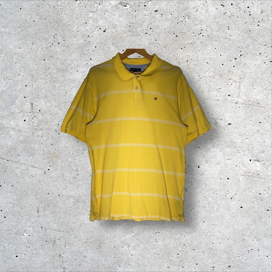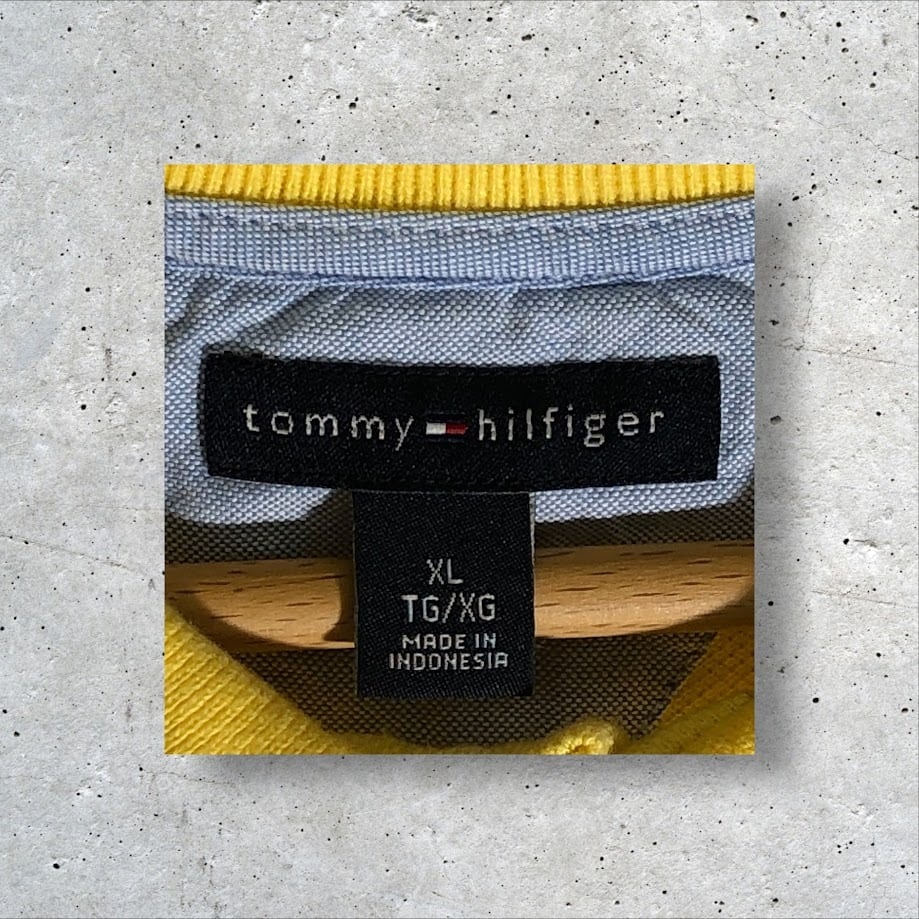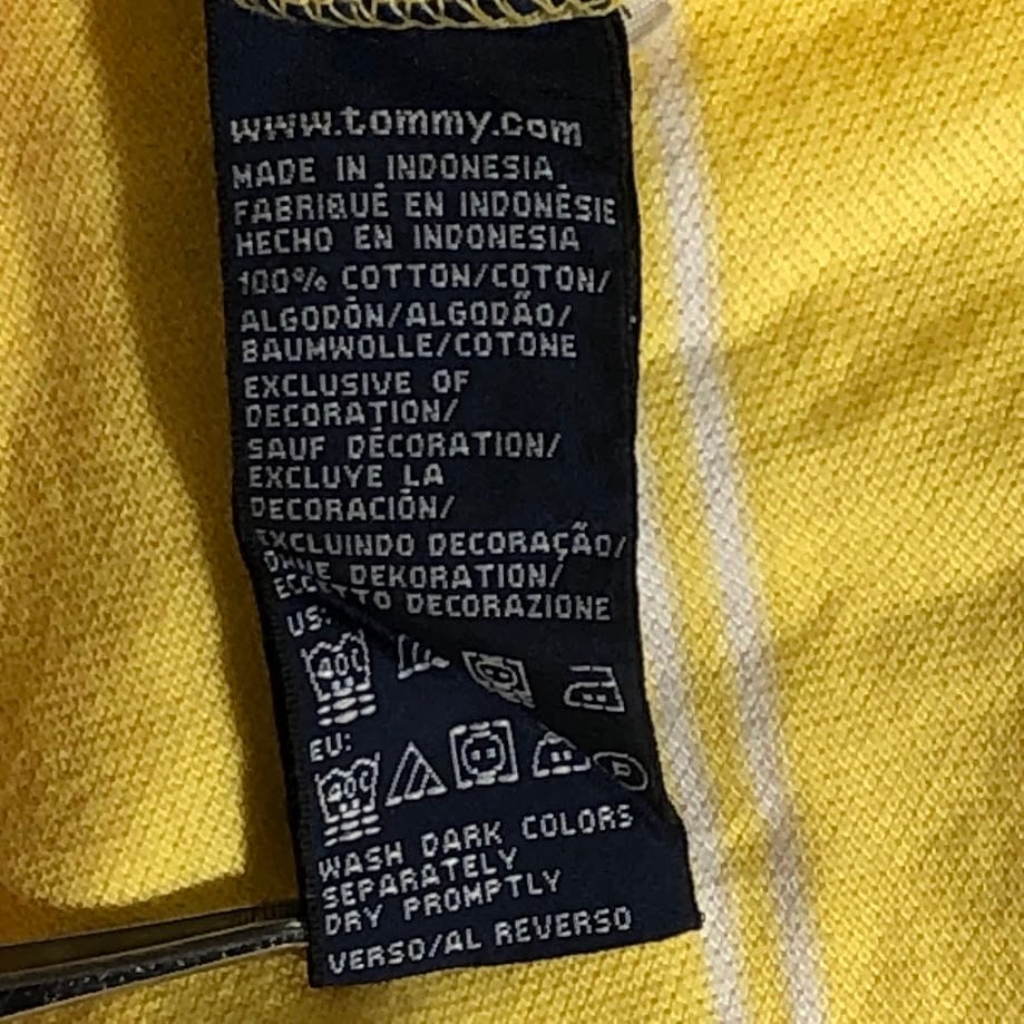 TOMMY HILFIGER トミーヒルフィガー 半袖 ポロシャツ フラッグ刺繍 ボーダー インドネシア製 XLサイズ イエロー