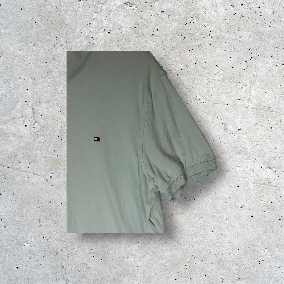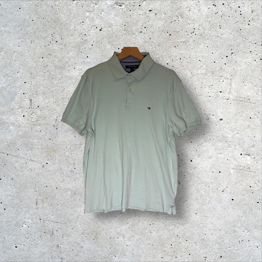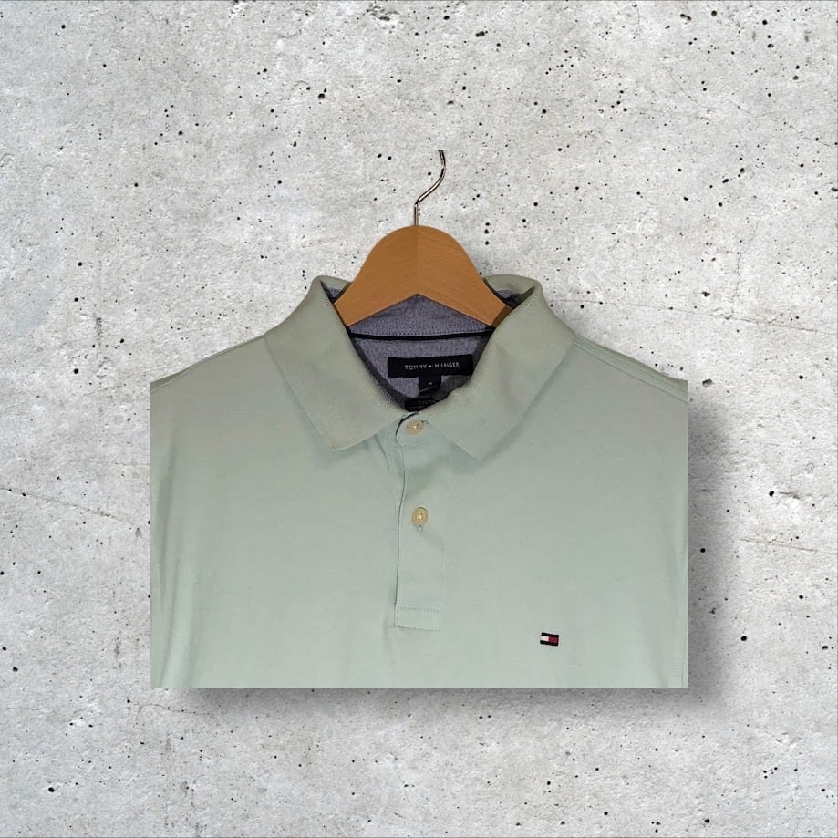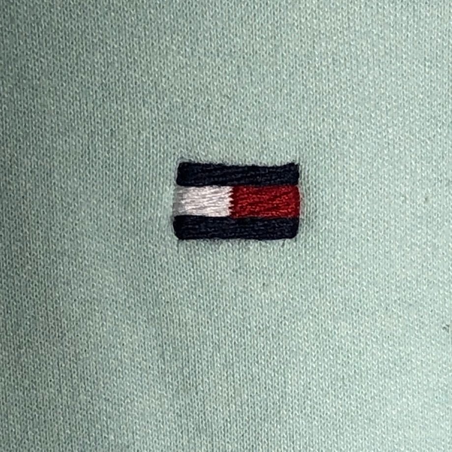 商品名:TOMMY HILFIGER CUSTOMFIT トミーヒルフィガー 半袖 ポロシャツ フラッグ ワンポイント刺繡 Bangladesh製 Mサイズ ライトグリーン