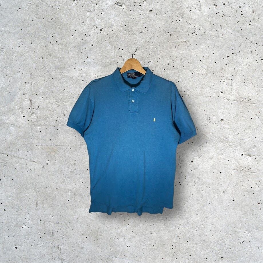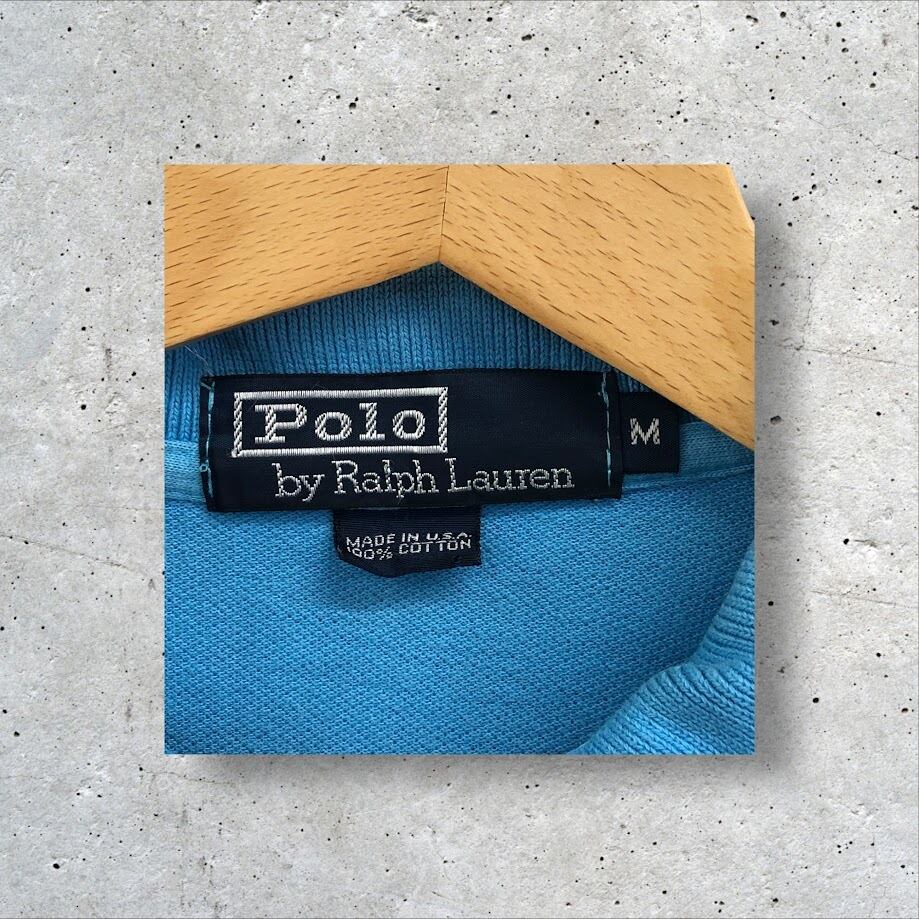 90's vintage 90年代 ヴィンテージ Polo by Ralph Lauren ポロバイラルフローレン ポニー刺繡 半袖 ポロシャツ ワンポイント刺繡 USA製 Mサイズ スカイブルー ライトブルー
