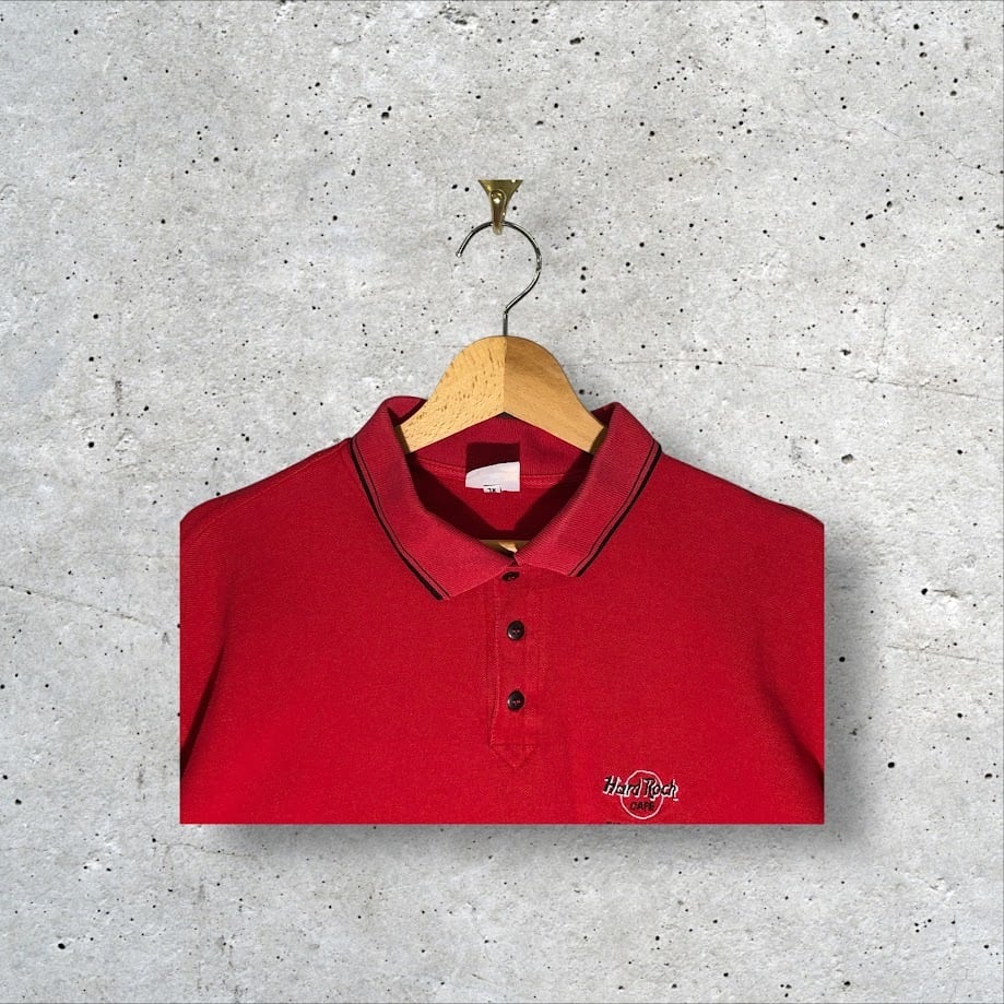 Hard Rock Cafe ハードロックカフェ RIO DE JANEIRO 半袖 ポロシャツ ワンポイント刺繍 オーバーサイズ ビッグサイズ XLサイズ レッド