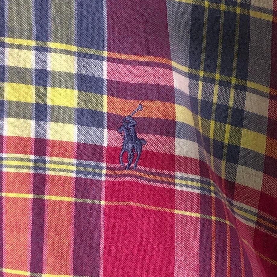 商品名:Ralph Lauren ラルフローレン BLAKE マドラスチェック柄 ポニー刺繡 半袖 シャツ ボタンダウン ワンポイント刺繡 オーバーサイズ ビッグシルエット INDIA製 XLサイズ マルチカラー