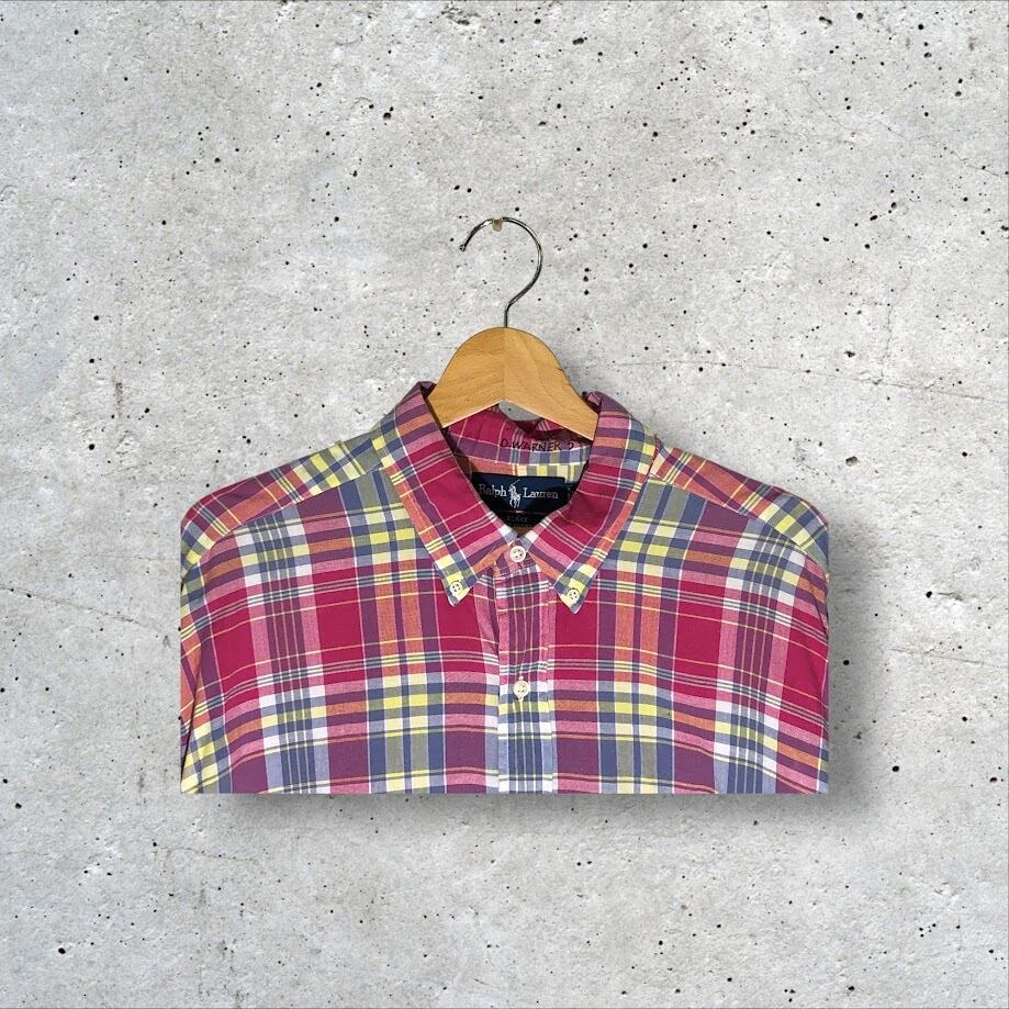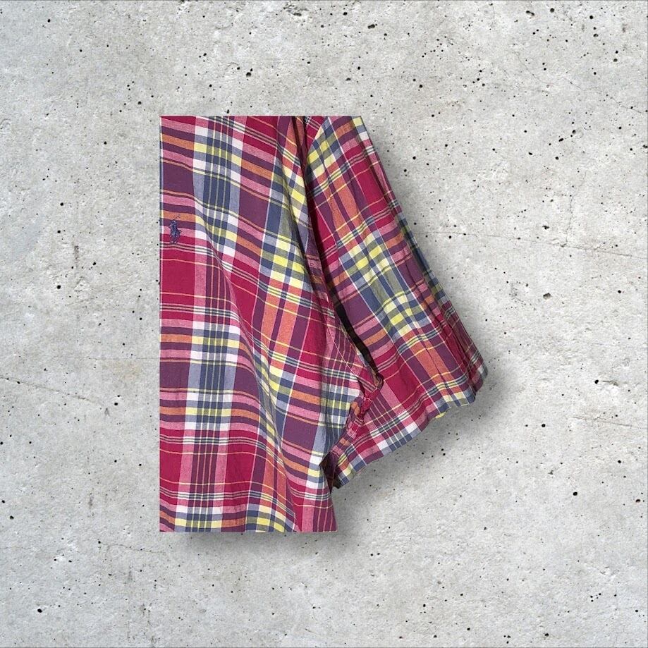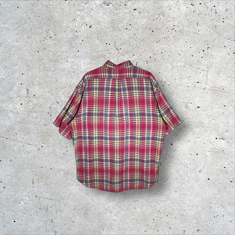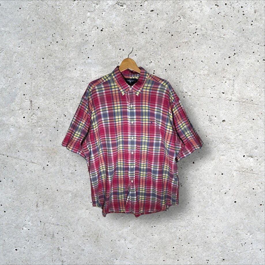 Ralph Lauren ラルフローレン BLAKE マドラスチェック柄 ポニー刺繡 半袖 シャツ ボタンダウン ワンポイント刺繡 オーバーサイズ ビッグシルエット INDIA製 XLサイズ マルチカラー