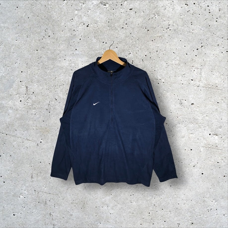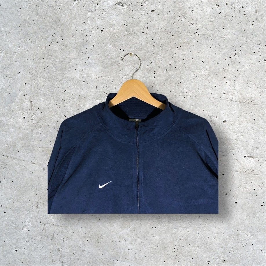 商品名:00's vintage 00年代 ヴィンテージ NIKE ナイキ FIT THERMA ハーフジップ フリースジャケット プルオーバー ライトアウター ロンT ワンポイント刺繡 オーバーサイズ ビッグシルエット インドネシア製 XLサイズ ブルー ネイビーブルー