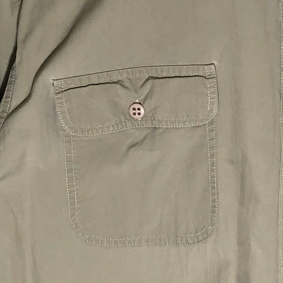 商品名:90's vintage 90年代 ヴィンテージ Columbia コロンビア 三角タグ ダブルポケット サファリシャツ 半袖 シャツ ボタンダウン オーバーサイズ ビッグサイズ シンガポール製 Lサイズ カーキ