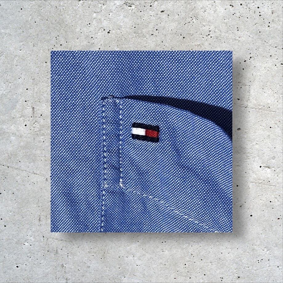 商品名:TOMMY HILFIGER トミーヒルフィガー フラッグロゴ 半袖シャツ ボタンダウンシャツ ワンポイントロゴ刺繍 ビッグサイズ オーバーサイズ CHINA製 XLサイズ ライトブルー