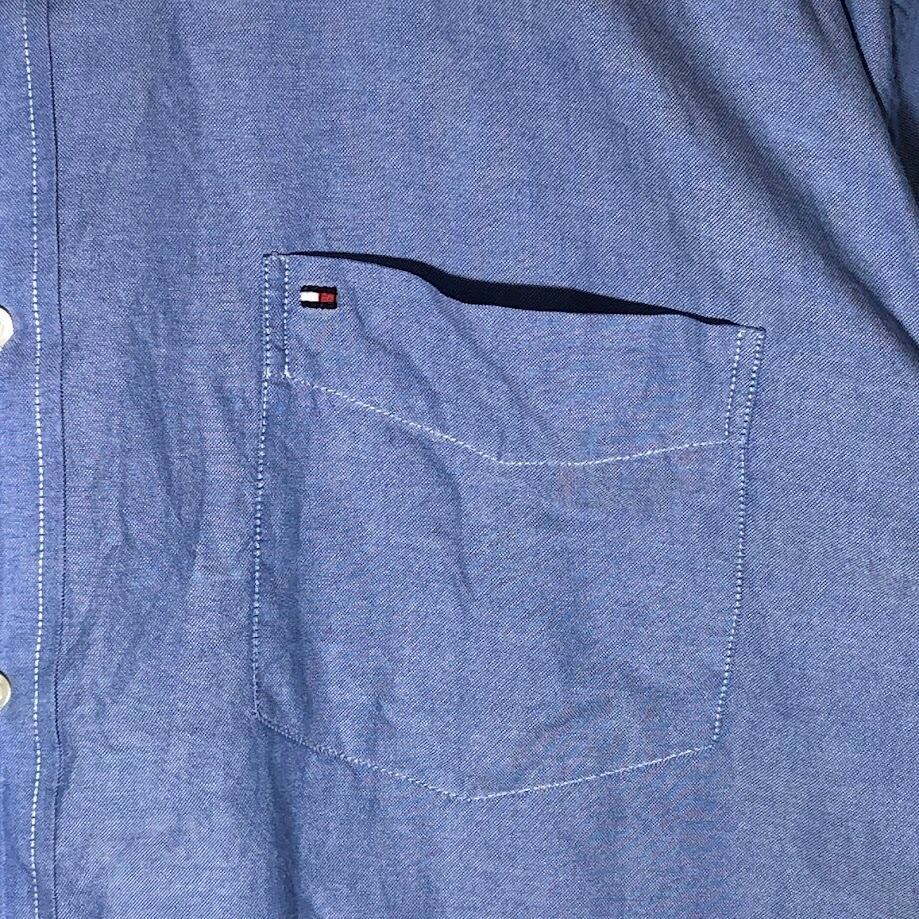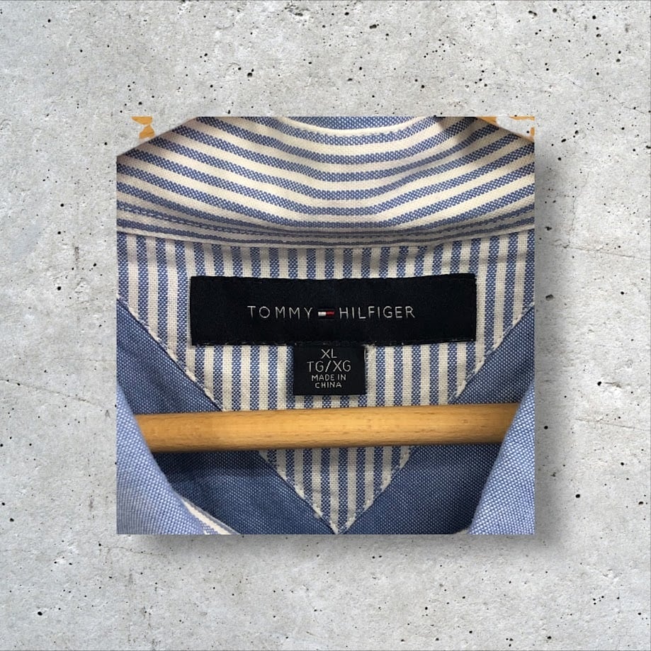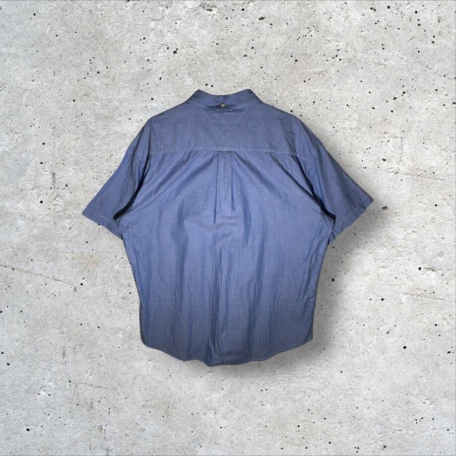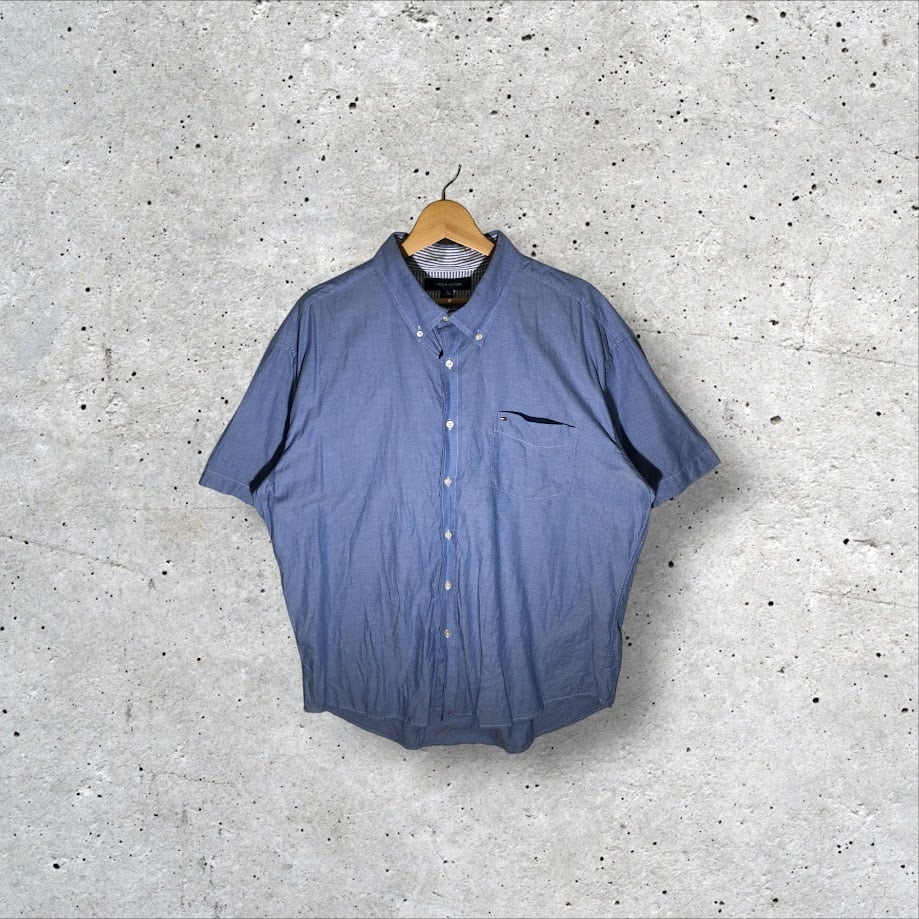 TOMMY HILFIGER トミーヒルフィガー フラッグロゴ 半袖シャツ ボタンダウンシャツ ワンポイントロゴ刺繍 ビッグサイズ オーバーサイズ CHINA製 XLサイズ ライトブルー