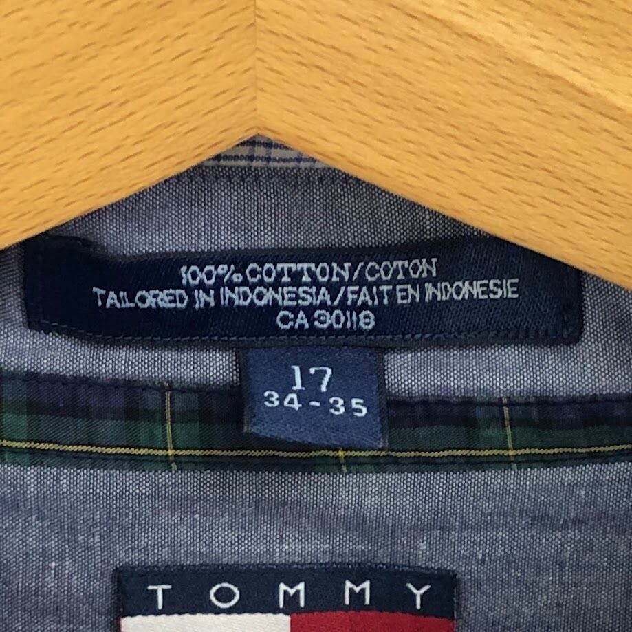 90`s vintage 90年代 ヴィンテージ TOMMY HILFIGER トミーヒルフィガー フラッグタグ チェック柄 長袖 シャツ オーバーサイズ ビッグシルエット 17 34-35サイズ ホワイト ブルー イエロー