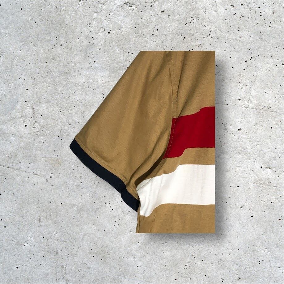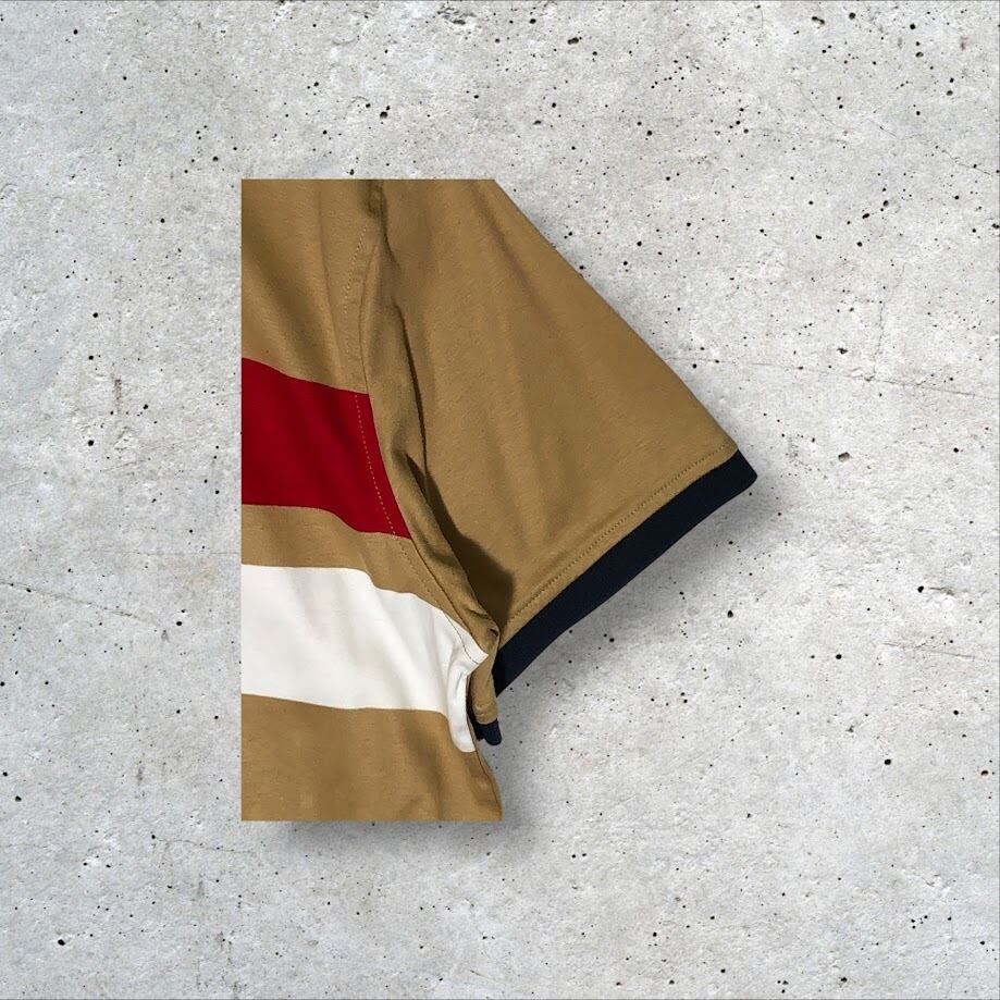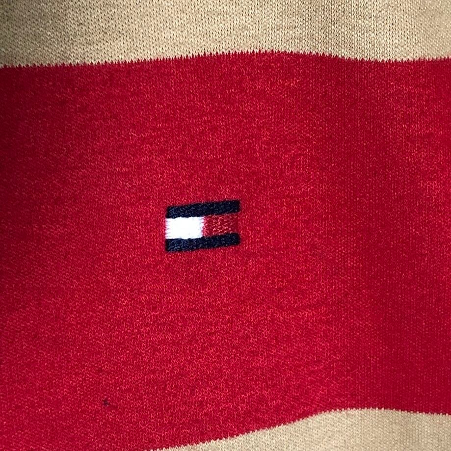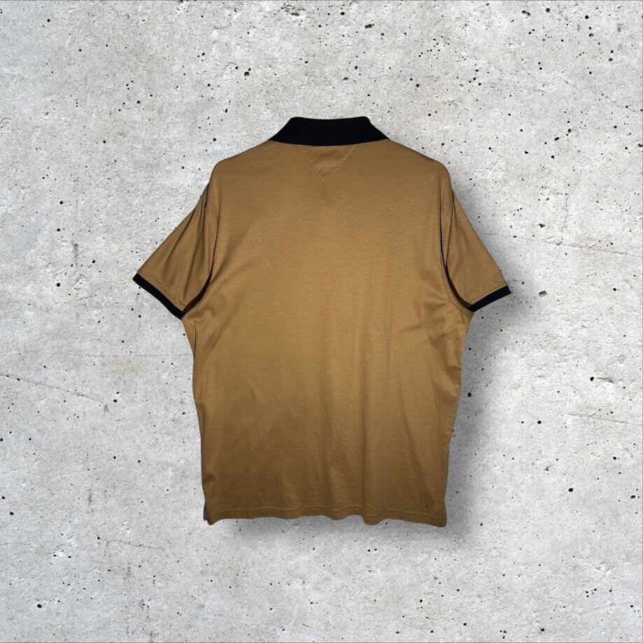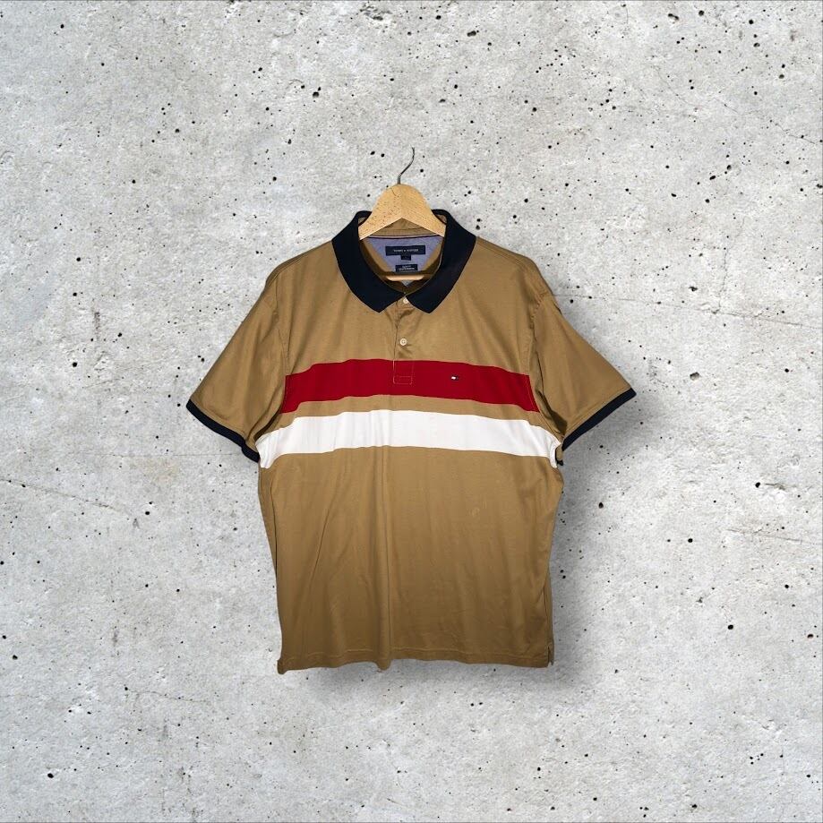 商品名:TOMMY HILFIGER トミーヒルフィガー SLIM FIT 半袖 ポロシャツ ライン ワンポイントロゴ Vietnam製 XLサイズ ブラウン レッド ホワイト